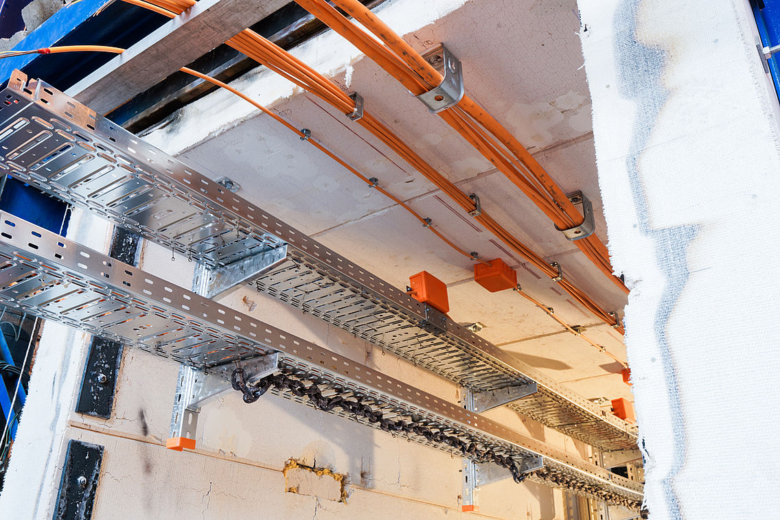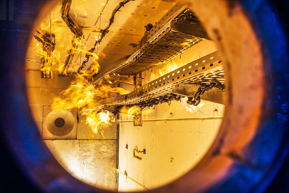 Here, fire protection ducts use their "lining" to protect the internally routed cables against fire and thus protect their electrical function. Cable systems with integrated maintenance of electrical functionality are used to route specially constructed safety cables on defined cable support systems or within specific steel fastening agents (for example, in the form of clips or grouped supports). Thanks to a chemical reaction of the insulation materials used, they protect the electrical function when there is an open fire in the fire chamber.