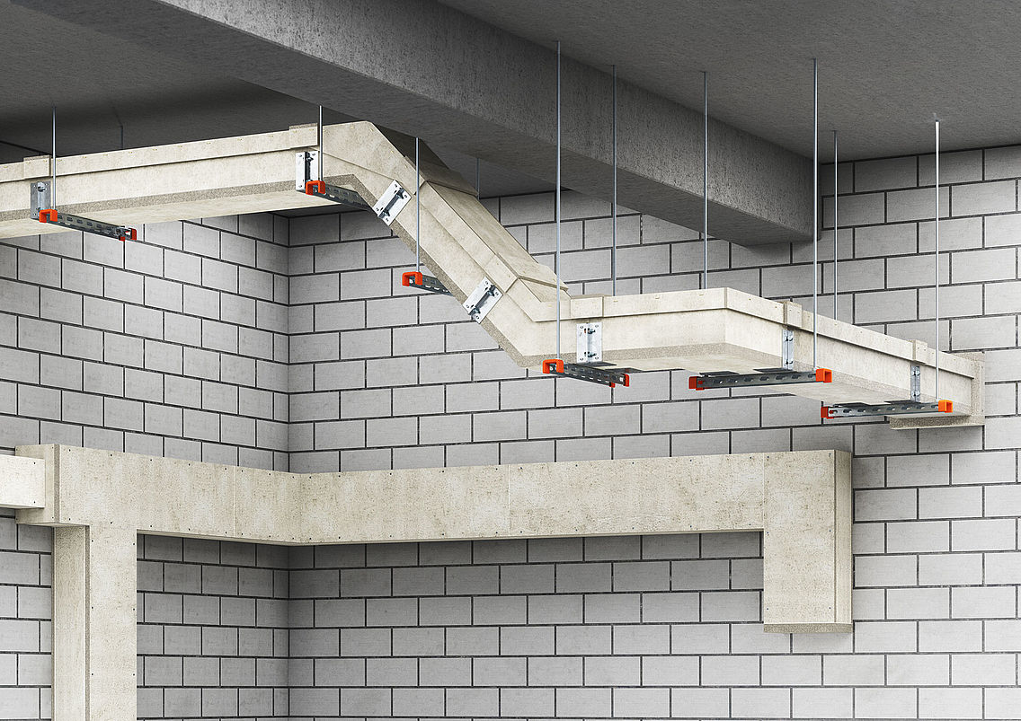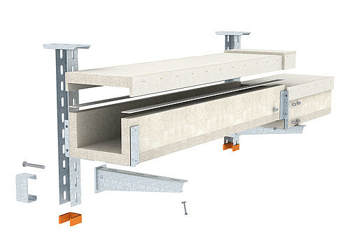 The PYROLINE® Con S fire protection duct can be installed on wall brackets or on a support system suspended from the ceiling, for example using brackets or a pendulum suspension.