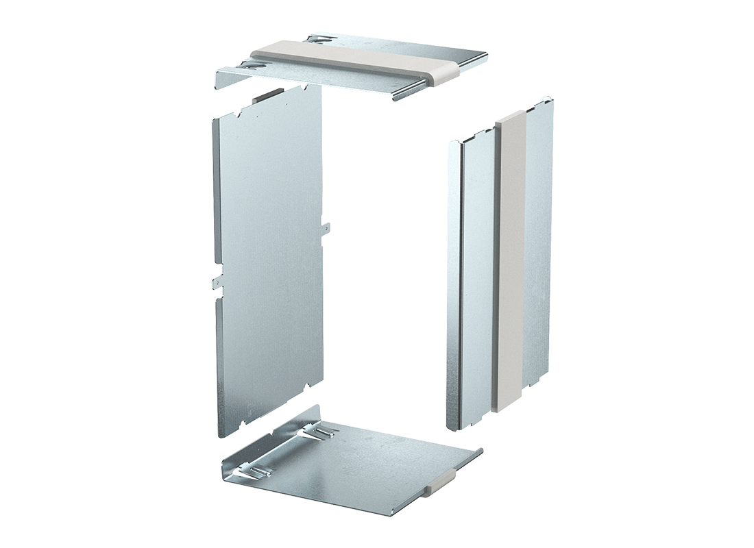 The core of the PYROLINE® Rapid PLM fire protection system is a cable trough with profiled cover-closure contour and a matching duct cover. During installation, the duct is fastened to the wall or a mounting system, filled and then closed with the cover. This stays in place simply without glands, just using the closing contour. The system uses inner connectors, in order to combine the individual duct segments and to seal them. This opens a wide range of benefits for the installation.