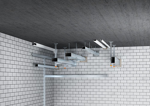 It can be installed directly on the wall or the ceiling, as well as suspended on different mounting systems. On the outside, the PYROLINE® Rapid PLM fire protection duct cannot be distinguished from an electrical installation duct after installation has been completed. This is provided by patented, internal connection and sealing technology. The innovative internal connector set connects and closes the fire protection duct system in such a way that it is smoke gas-tight.