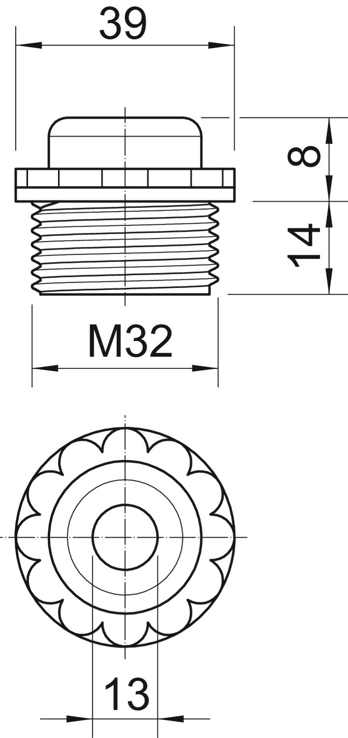 CO2 Footprint (GWP) Cradle-to-Gate 0,0209 kg CO2e / 1 Piece Colour Light grey; RAL 7035 Dimension M32 Dimension D 13 mm Dimension E 39 mm Dimension L1 14 mm Dimension L2 8 mm Halogen-free yes Material Polyethylene Protection rating IP54 Size M32 Thread length 14 mm WAF 34 - All types