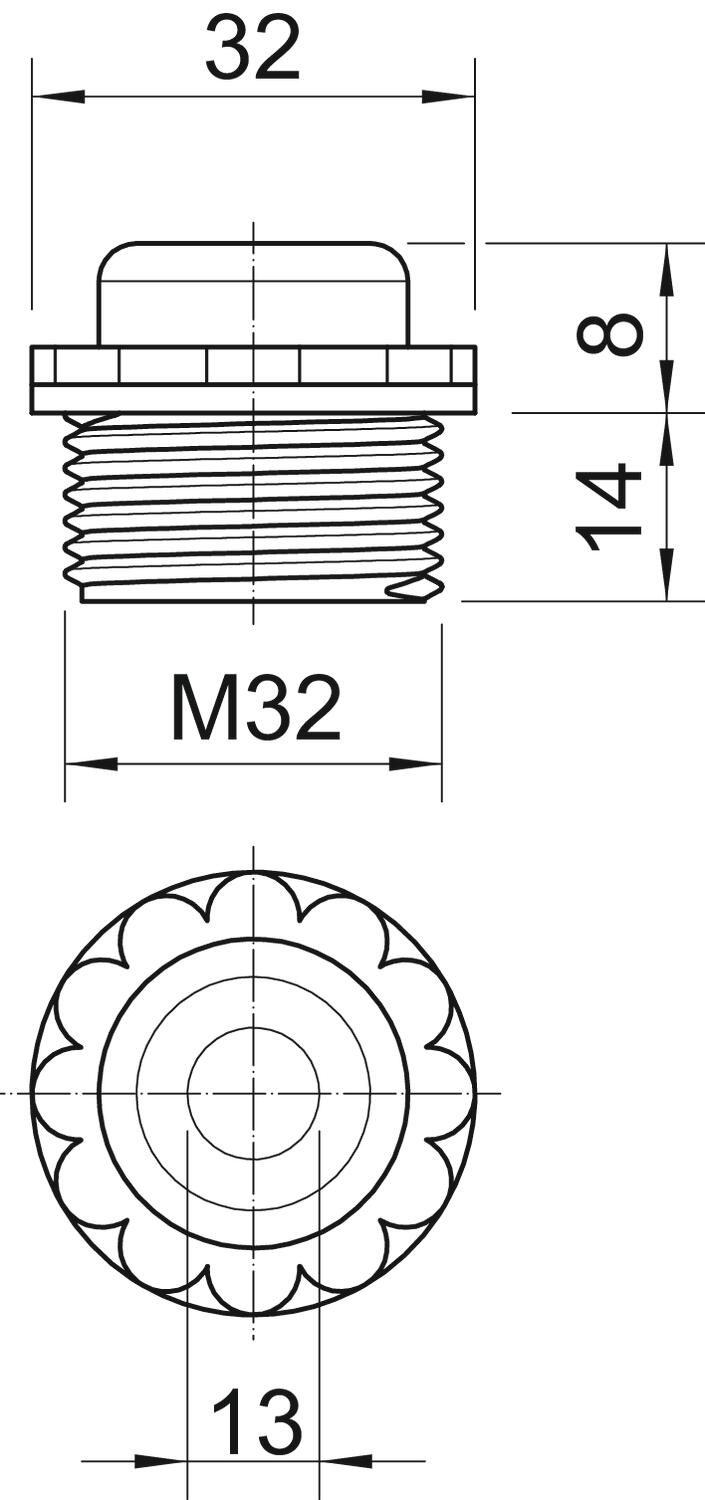 CO2 Footprint (GWP) Cradle-to-Gate 0,0214 kg CO2e / 1 Piece Colour Light grey; RAL 7035 Dimension M32 Dimension D 13 mm Dimension E 39 mm Dimension L1 14 mm Dimension L2 8 mm Halogen-free yes Material Polyethylene Protection rating IP54 Size M32 Thread length 14 mm WAF 34 - All types