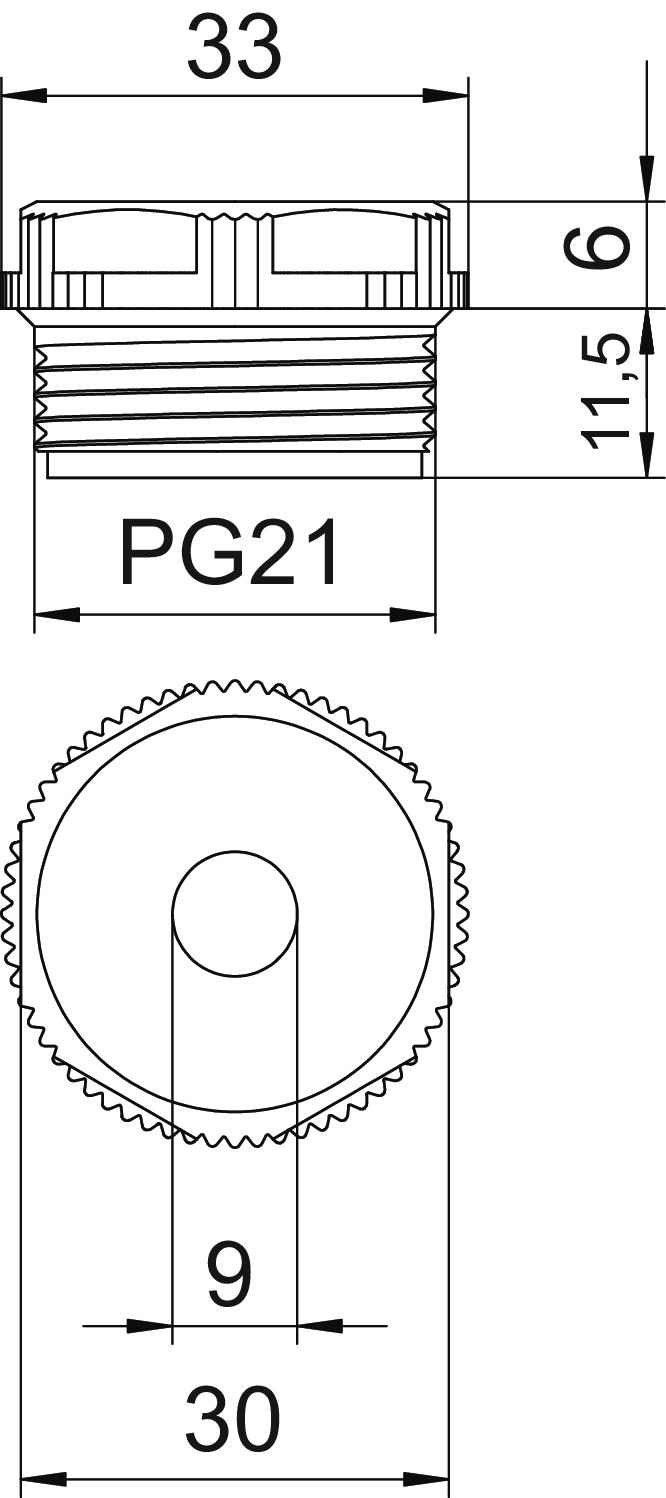 CO2 Footprint (GWP) Cradle-to-Gate 0,0133 kg CO2e / 1 Piece Colour Light grey; RAL 7035 Dimension PG21 Dimension D 9 mm Dimension E 33 mm Dimension L1 11,5 mm Dimension L2 6 mm Halogen-free yes Material Polyethylene Protection rating IP54 Size Pg 21 Thread length 11,5 mm WAF 30 - All types