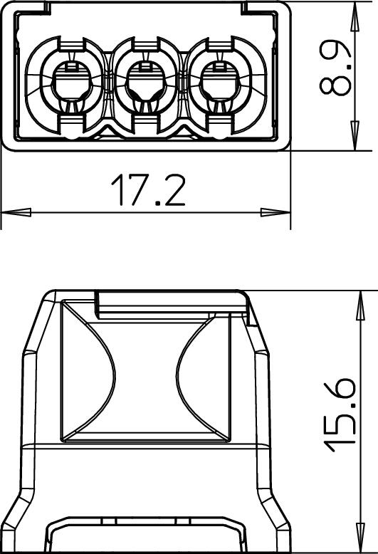 Colour Light grey; RAL 7035 Connectable conductor cross-section, multi-wire, max. 2,5 mm² Connectable conductor cross-section, multi-wire, min. 1,5 mm² Connectable conductor cross-section, single-wire, max. 2,5 mm² Connectable conductor cross-section, single-wire, min. 0,5 mm² Cross-section 3 x 0.5 mm² to 2.5 mm² single-wire conductors 3 x 1.5 mm² to 2.5 mm² rigid, multi-wire conductors mm² Dimension 3x2,5mm² Flame-resistant Acc. to VDE 0471/DIN 695 Part 2-1, test temperature 850°C Height 8,9 mm Length 17,2 mm Material Polyamide No. of terminals 3 Nominal cross-section, max. 2,5 mm² Nominal cross-section, min. 0,5 mm² Nominal current 24 A Nominal voltage 450 V Permitted temperature range, max. 90 °C Permitted temperature range, min. -5 °C Pole number 3 Suitable for flexible conductors no Suitable for multi-wire conductors yes Suitable for solid conductors no Width 15,6 mm With actuating levers no - All types
