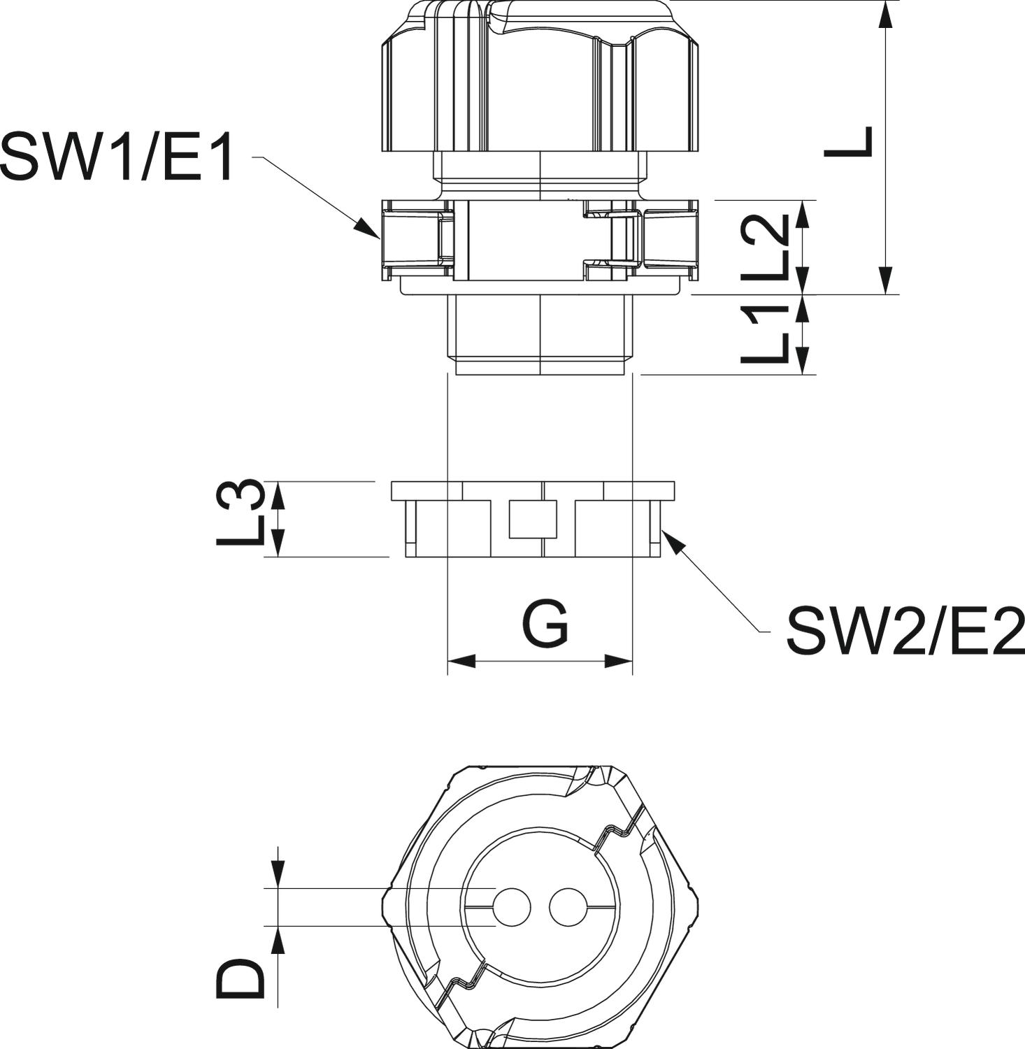 Bend protection no CO2 Footprint (GWP) Cradle-to-Gate 0,1218 kg CO2e / 1 Piece Colour Light grey Dimension M20 Dimension D 4 mm Dimension E1 (mm) 33,5 mm Dimension E2 30 mm Dimension G M20x1,5 mm Dimension L 30 mm Dimension L max. 30,5 mm Dimension L min. 24,5 mm Dimension L1 10 mm Dimension L2 8,5 mm Dimension L3 8 mm explosion-proof no Fibre-glass reinforced no Flame-resistant acc. to VDE 0471/DIN 695 Part 2-1, test temperature 650°C Flat cable gland no For Ex zone Without For Ex zone dust Without For Ex zone gas Without Halogen-free yes Height 40 mm Hexagonal corner dimension 30 mm Impact-resistant yes Length 30 mm Material Polycarbonate Nominal thread size 20 Number of drill holes 2 Permitted temperature range, max. 80 °C Permitted temperature range, min. -20 °C Protection rating IP67 Sealing insert, multiple yes Splittable gland yes Strain relief option no Thread M20 x 1,5 Thread increase 1,5 mm Thread length 10 mm Thread type Metric Type of seal Sealing ring Unstable torque 2 Nm Version for Straight WAF 1 30 mm WAF 2 27 mm Width 29 mm With locknut yes - All types