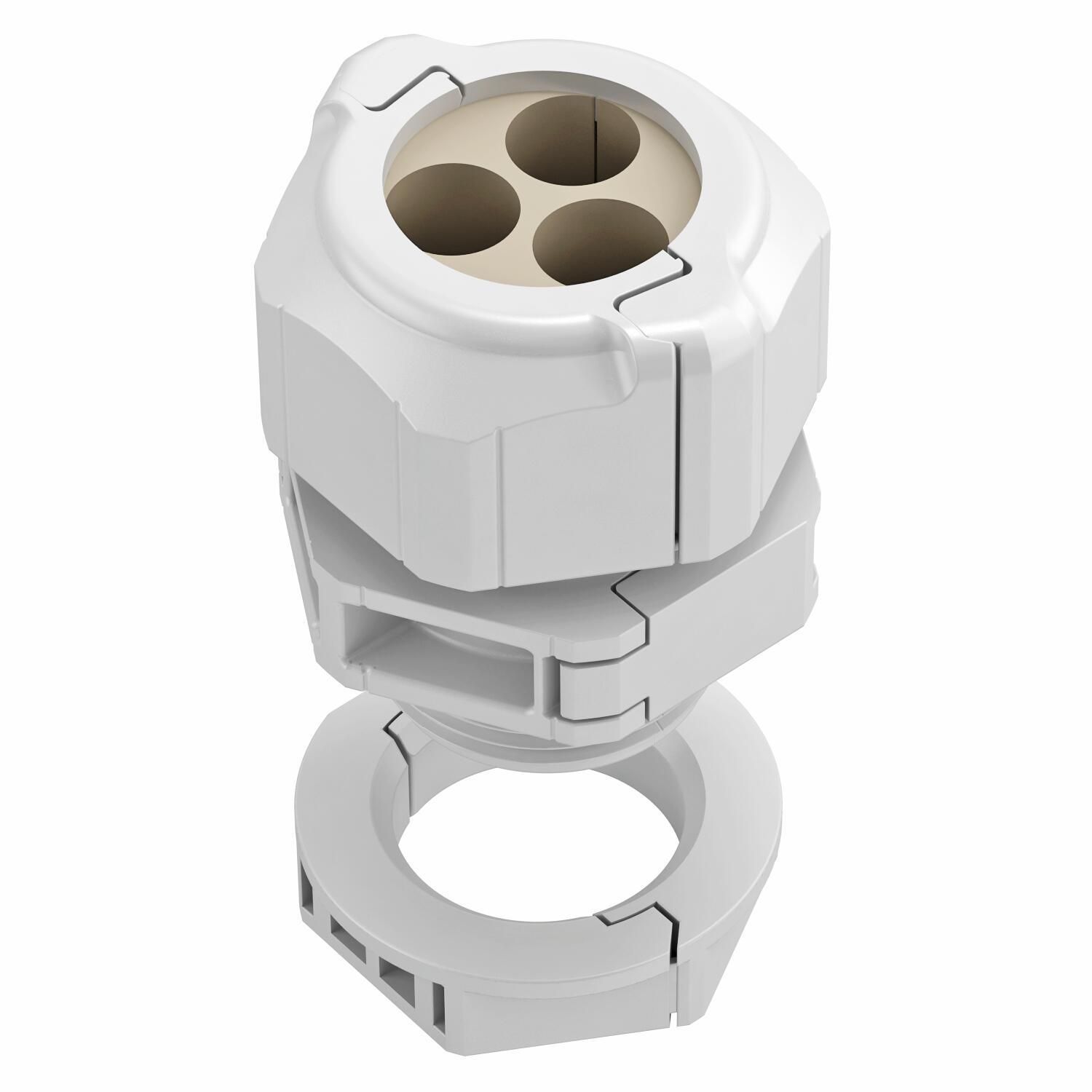 Product descriptionThe splittable cable gland V-TEC TB.. ensures - like all V-TEC glands - a secure sealing of the cable. The installation of pre-terminated cables or function cables, for example, is easy and quick, thanks to the splitting of the cable gland.