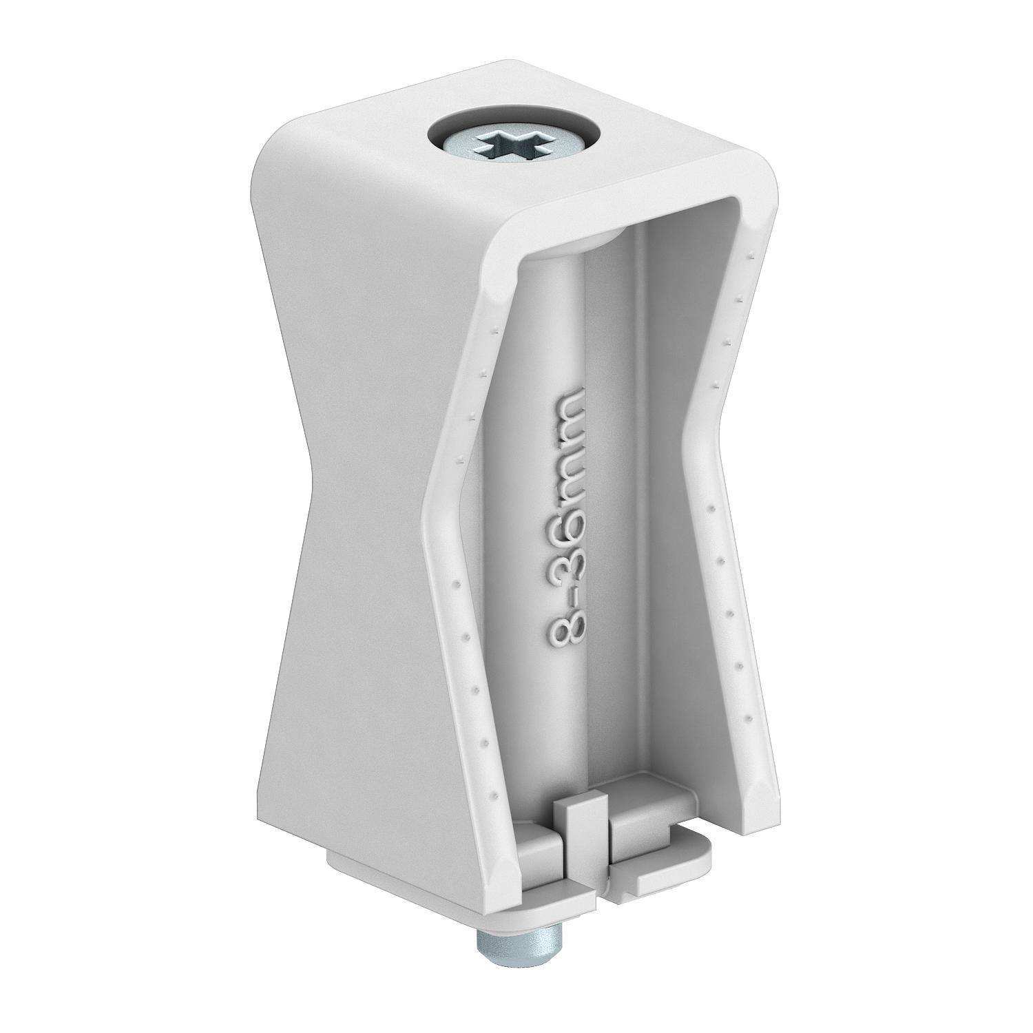 Product descriptionAlso suitable for rails of 11 ÷ 12 mm slot width; polystyrene clip element, impact resistant, halogen-free, light grey RAL 7035; metal parts: electrogalvanised steel.