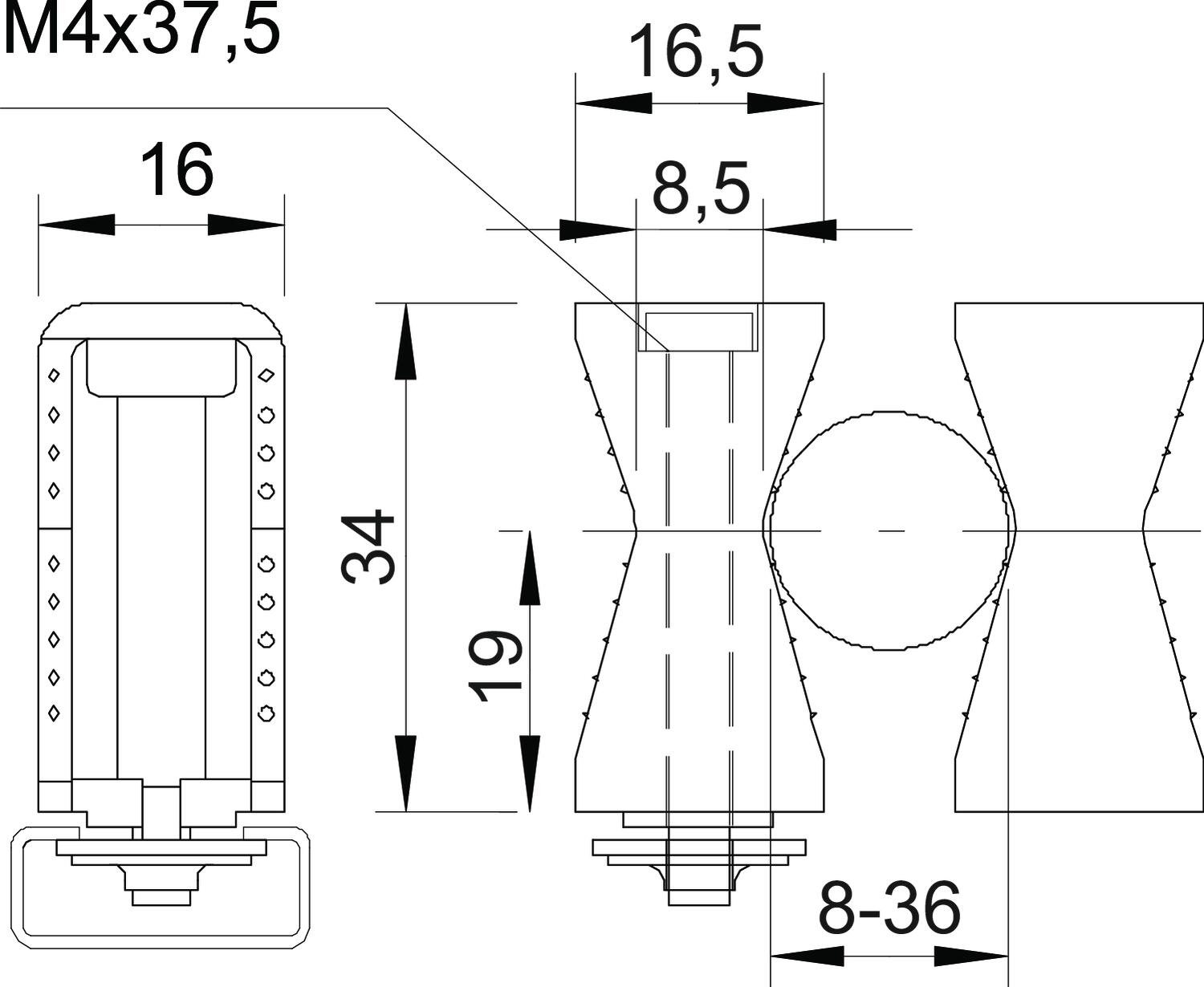 Bolt M4 x 40 Clamping range D, max. 36 mm Clamping range D, min. 8 mm CO2 Footprint (GWP) Cradle-to-Gate 0,0302 kg CO2e / 1 Piece Colour Graphite black; RAL 9011 Dimension 8-36mm Dimension B 17 mm Dimension B1 7,5 mm Dimension H 34 mm Dimension H1 18 mm Distance to the wall no Fastening type Rail fastening for rail with slot width (with interval), max. 12 mm for rail with slot width (with interval), min. 11 mm Halogen-free yes Impact-resistant no Material Polystyrene Nominal diameter 36 mm Number of cables/pipes 1 Plastic-covered no Suitable in fire protection area no UV-resistant no - All types