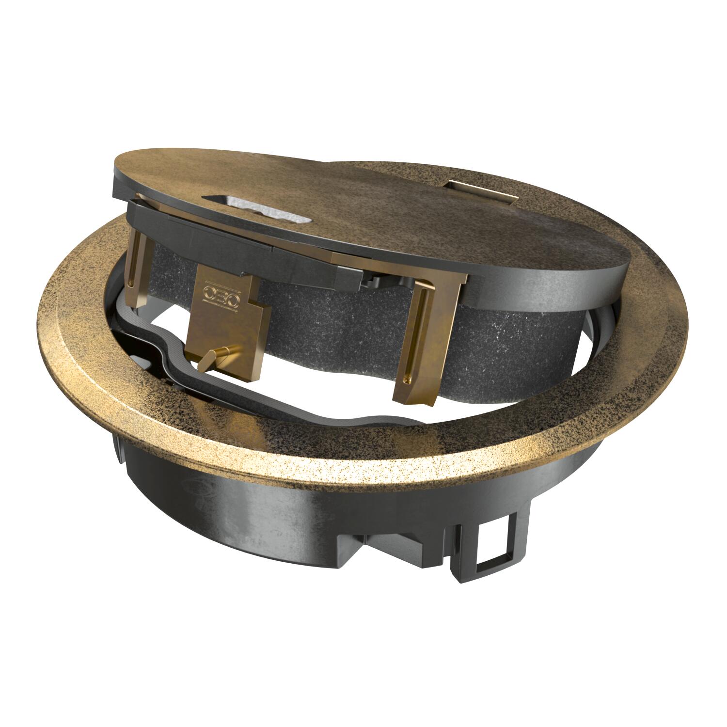 Approvals VDE Cable outlet version Swivellable cord outlet CO2 Footprint (GWP) Cradle-to-Gate 0,5214 kg CO2e / 1 Piece External diameter 140 mm Floor care Wet Floor covering protection frame yes Installation depth 85 mm Material Die-cast zinc Opening mechanism Locking slider Protection rating (IP) when unused IP66 Protection rating (IP) when used IP20 Protection rating IK code IK10 Standard EN 50085-2-2 Suitable for cavity floor installation yes Suitable for raised floor installation yes Suitable for underfloor ducts no Suitable for wet care yes Surface Brass-coated Version for Round Vertical load, large area to 15,000 N Vertical load, small area to 3,000 N With floor covering recess no - All types