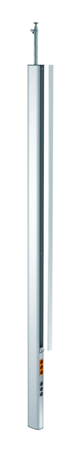 The clamping device attached at the top of the ISS service pole can be variably adjusted between 315 and 480 mm. Possible colour options are aluminium anodised or pure white. The pole is based on a slender, oval aluminium profile. There are two 45 mm system openings on opposite sides for direct installation of Module 45® devices.