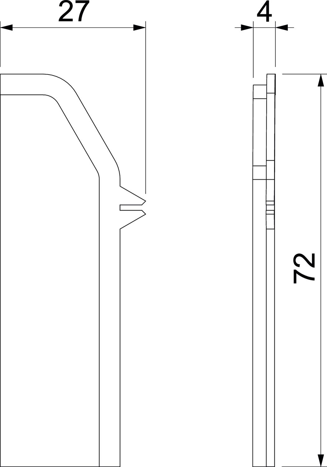 CO2 Footprint (GWP) Cradle-to-Gate 0,0239 kg CO2e / 1 Piece Colour Cream; RAL 9001 Halogen-free no Height 72 mm Length 4 mm Material Polyvinylchloride Permitted temperature range, max. 60 °C Permitted temperature range, min. -5 °C Protection rating IP40 Protection rating IK code IK06 Protective film no Width 27 mm - All types