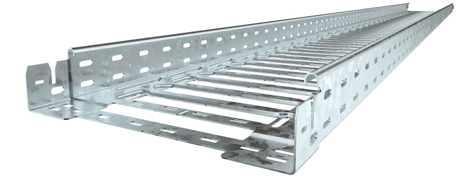 The cable tray has continuous side perforations of 7 x 20 mm for the installation of additional connection and mounting components.