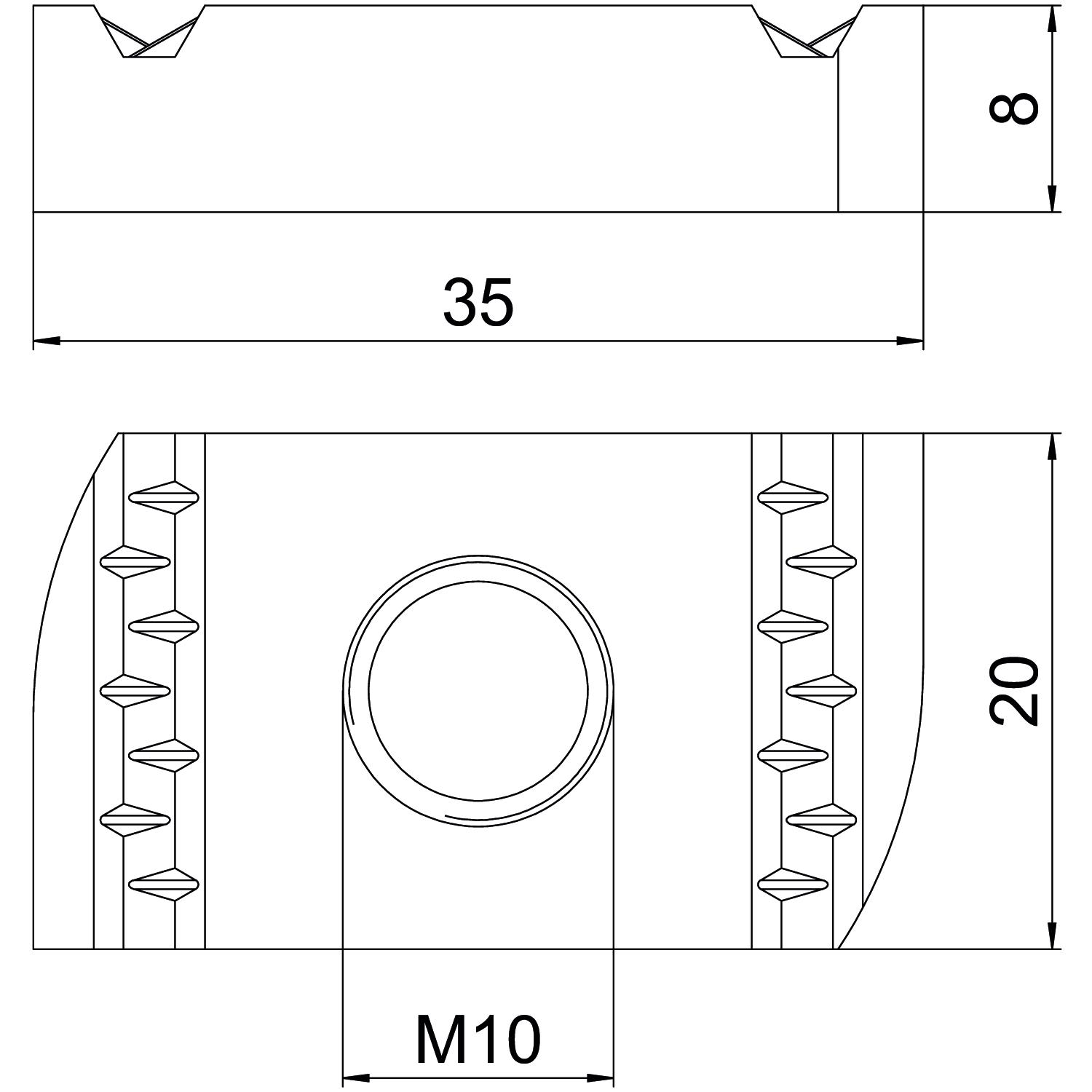 CO2 Footprint (GWP) Cradle-to-Gate 0,1761 kg CO2e / 1 Piece Dimension M10 Dimension H 8 mm Height 8 mm Length 35 mm Material Stainless steel Surface Bright, treated Thread M10 Thread metric 10 Width 20 mm With spring no - All types