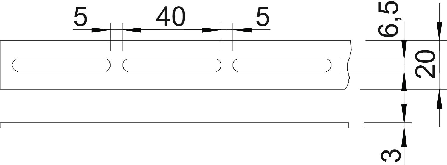 CO2 Footprint (GWP) Cradle-to-Gate 1,0314 kg CO2e / 1 Meter Dimension 20x3x3000mm Dimension 20 x 3 Dimension b 20 mm Dimension d 6,5 mm Dimension e 40 mm Dimension t 3 mm Hole size 6,5 x 40 mm Length 3000 mm Material Steel per bundle 60 Surface Hot-dip galvanised - All types