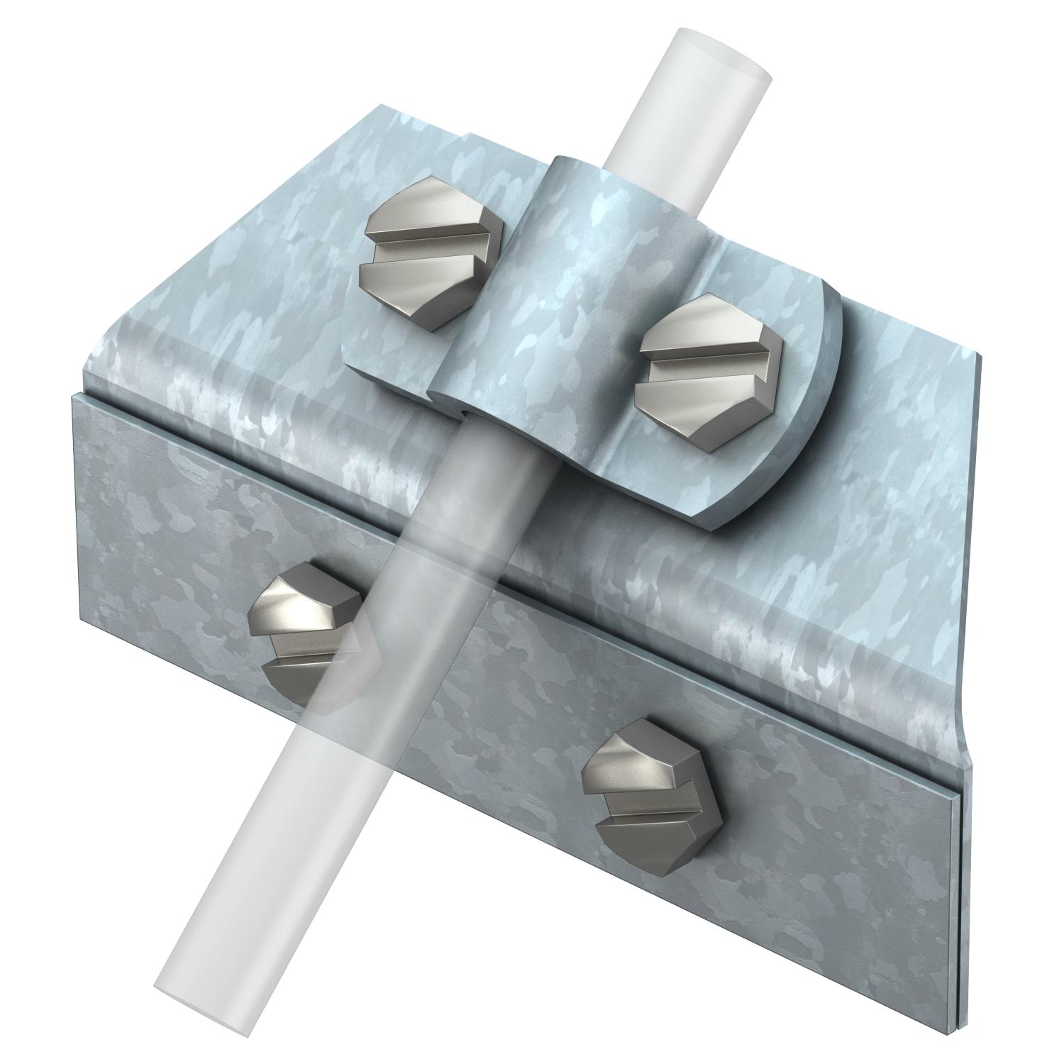Clamping range, max. 8 mm CO2 Footprint (GWP) Cradle-to-Gate 0,466 kg CO2e / 1 Piece Dimension 8-10mm Fit Rd 8-10 mm Intermediate plate no Material Steel Surface Hot galvanized Type of connector Snow-catching grate clamp Type of fastening screw Hexagonal bolt - All types