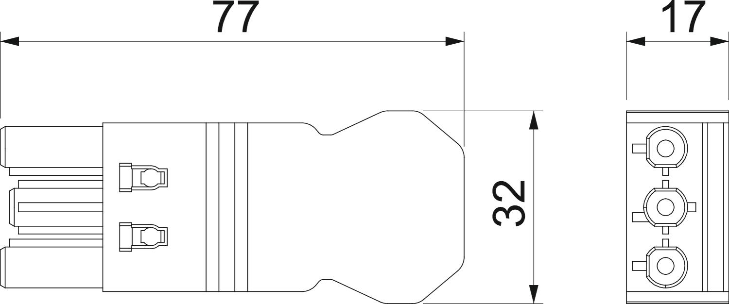 Product descriptionSocket section, 3-pin, type GST18i with screw connection for cables of 1.5–4.0 mm² and for cable diameters between 10.5–14.5 mm (H05VV, NYM), unmounted with strain relief, terminable in situ, 250 V, 16 A.