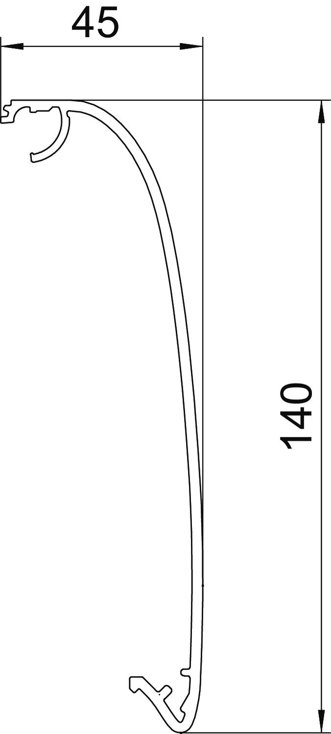 Antibacterial treatment no CO2 Footprint (GWP) Cradle-to-Gate 16,6574 kg CO2e / 1 Piece Colour aluminium Cover mounting type Cross-over Dimension 45x140x999 Halogen-free yes Height 45 mm Length 999 mm Material Aluminium Protective film yes Surface Anodised Version for Smooth Width 140 mm - All types