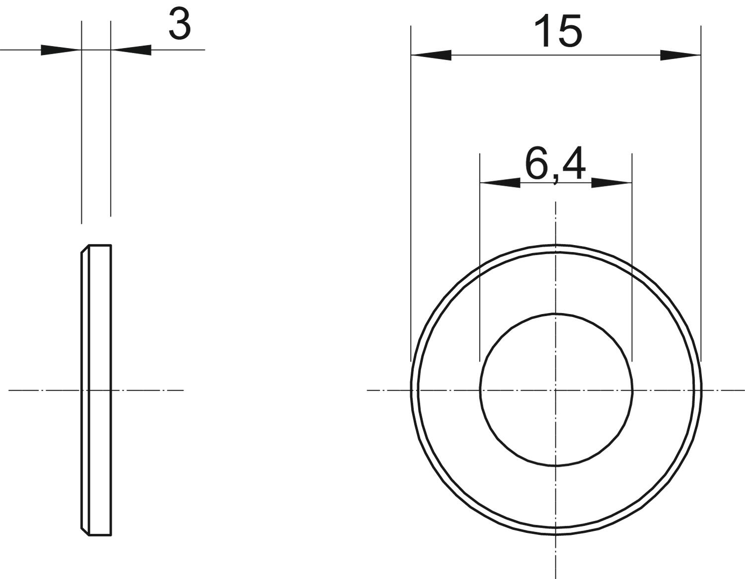 Accessories yes CO2 Footprint (GWP) Cradle-to-Gate 0,0083 kg CO2e / 1 Piece Diameter 15 mm Dimension Ø15mmx3mm Dimension d 6,4 mm Dimension d min. 15 mm Dimension h 3 mm External diameter 15 mm Faceted no Halogen-free no Hardened no Inner diameter 6,4 mm Material Steel Material thickness 3 mm Spare part no Surface Electrogalvanized - All types