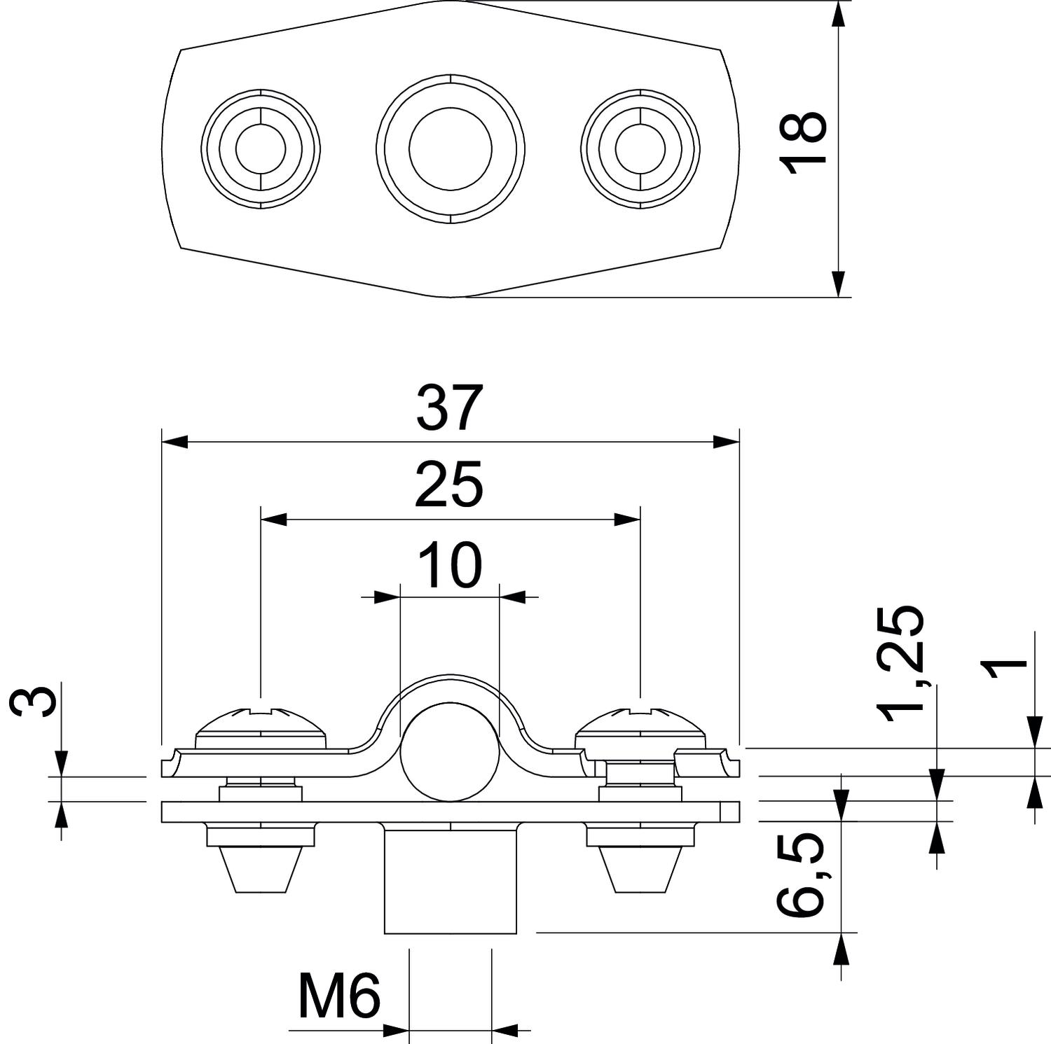 Clamping range D, max. 10 mm Clamping range D, min. 8 mm CO2 Footprint (GWP) Cradle-to-Gate 0,156 kg CO2e / 1 Piece Dimension 8-10mm Dimension A 37 mm Dimension B 25 mm Dimension b 18 mm Dimension D 10 mm Dimension d max. 10 mm Dimension d min. 8 mm Dimension H1 12 mm Dimension t1 (mm) 1 Dimension t2 (mm) 1,25 Dimension x 3 mm Distance to the wall yes Fastening type Threaded connection For diameter 8 - 10 Halogen-free yes Maintain electrical functions yes Material Stainless steel 1.4571 Material thickness 1,25 mm Number of cables/pipes 1 Plastic-covered no UV-resistant yes Version for Closed - All types