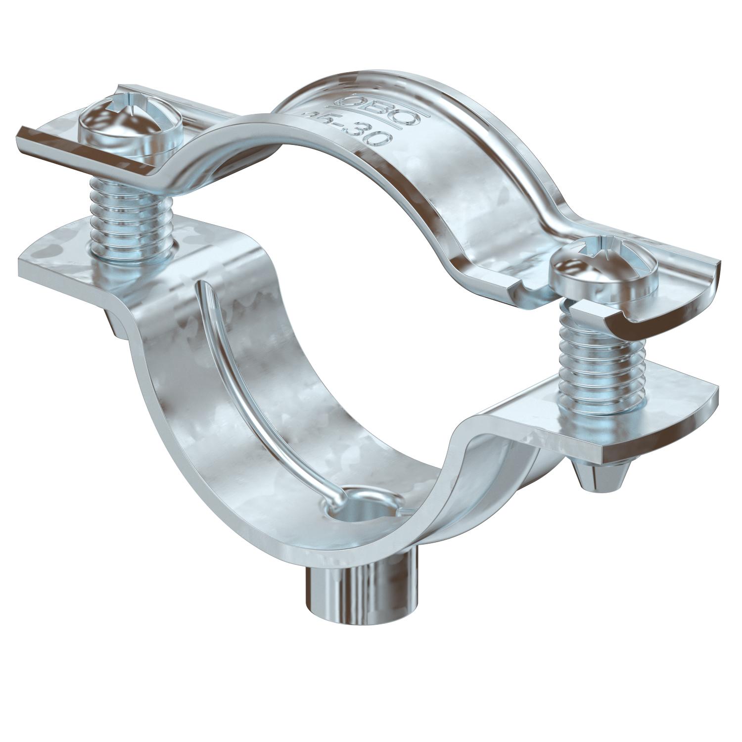 Clamping range D, max. 30 mm Clamping range D, min. 25 mm CO2 Footprint (GWP) Cradle-to-Gate 0,0982 kg CO2e / 1 Piece Dimension 25-30mm Dimension A 59 mm Dimension b 18 mm Dimension B 45 mm Dimension D 30 mm Dimension d max. 30 mm Dimension d min. 25 mm Dimension H1 6,5 mm Dimension t1 (mm) 1,5 Dimension t2 (mm) 1,5 Dimension x 7,5 mm Distance to the wall yes Fastening type Threaded connection For diameter 25 - 30 Halogen-free yes Maintain electrical functions yes Material Steel Material thickness 1,5 mm Number of cables/pipes 1 Plastic-covered no Surface Hot-dip galvanised UV-resistant yes Version for Closed - All types