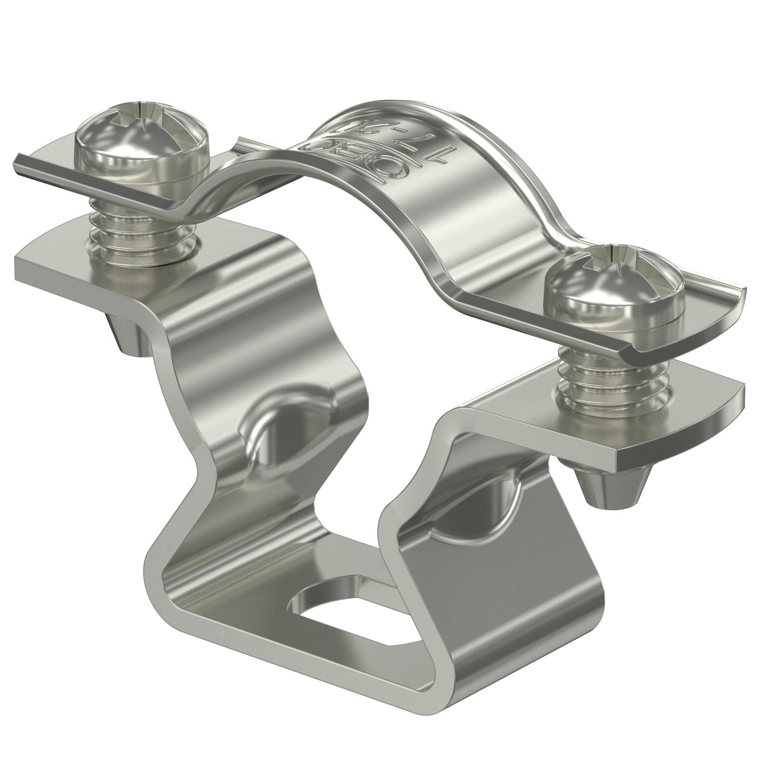 Clamping range D, max. 20 mm Clamping range D, min. 17 mm CO2 Footprint (GWP) Cradle-to-Gate 0,1699 kg CO2e / 1 Piece Dimension 17-20mm Dimension A 47 mm Dimension b 14 mm Dimension B 35 mm Dimension D 20 mm Dimension d max. 20 mm Dimension d min. 17 mm Dimension L 10 mm Dimension s 12 mm Dimension t1 (mm) 1,25 Dimension t2 (mm) 1,5 Dimension x 4,5 mm Distance to the wall yes Fastening type Screw hole For diameter 17 - 20 Halogen-free yes Maintain electrical functions yes Material Stainless steel 1.4571 Material thickness 1,5 mm Number of cables/pipes 1 Plastic-covered no UV-resistant yes Version for Closed - All types