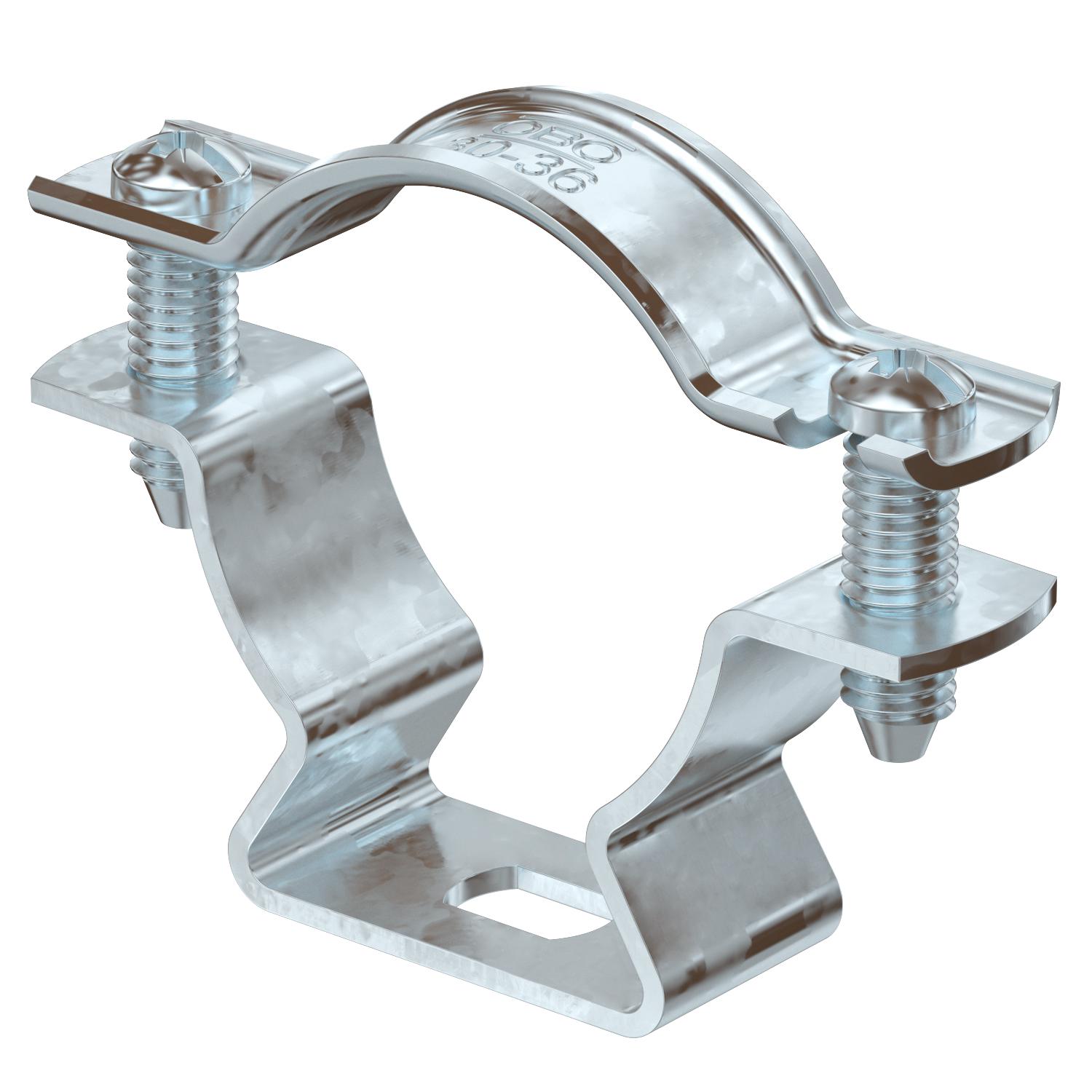 Clamping range D, max. 36 mm Clamping range D, min. 30 mm CO2 Footprint (GWP) Cradle-to-Gate 0,1054 kg CO2e / 1 Piece Dimension 30-36mm Dimension A 65 mm Dimension b 16 mm Dimension B 51 mm Dimension D 36 mm Dimension d max. 36 mm Dimension d min. 30 mm Dimension L 10 mm Dimension s 20 mm Dimension t1 (mm) 1,5 Dimension t2 (mm) 1,5 Dimension x 9 mm Distance to the wall yes Fastening type Screw hole For diameter 30 - 36 Halogen-free yes Maintain electrical functions yes Material Steel Material thickness 1,5 mm Number of cables/pipes 1 Plastic-covered no Surface Hot-dip galvanised UV-resistant yes Version for Closed - All types