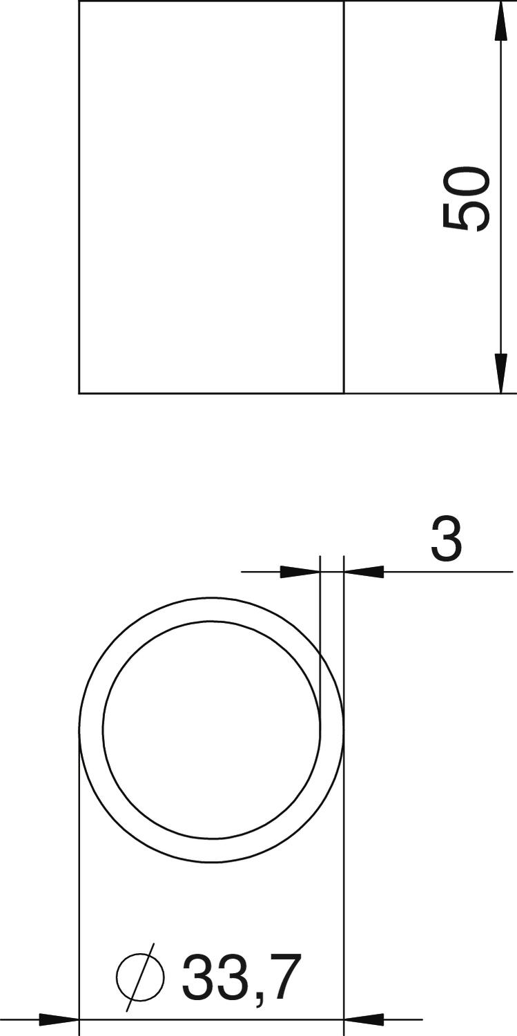 Colour zinc Dimension 33,7x50x3mm Dimension L 50 mm External diameter 33,7 mm Inner diameter 27,7 mm Length 50 mm Material Steel Surface Hot-dip galvanised - All types