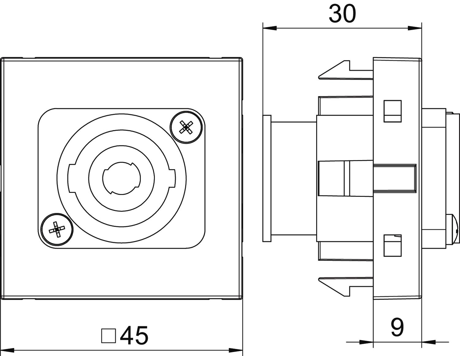 Product descriptionMultimedia support with one Speakon connection socket, straight cable outlet, without labelling panel, Speakon 4-pin socket with screw connection. Support plate with locking fastening, suitable for horizontal and vertical installation in the system environment.