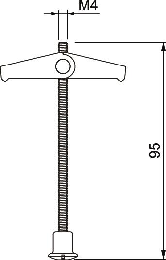 Breaking load 0,2 kN Dimension M4x95mm Drill hole 14 mm Drill hole diameter, min. 14 mm Length 90 mm Material Steel Minimum cavity depth 35 mm Surface Electrogalvanized Thread M4 Thread type Metric Version for With threaded shaft With washer no - All types