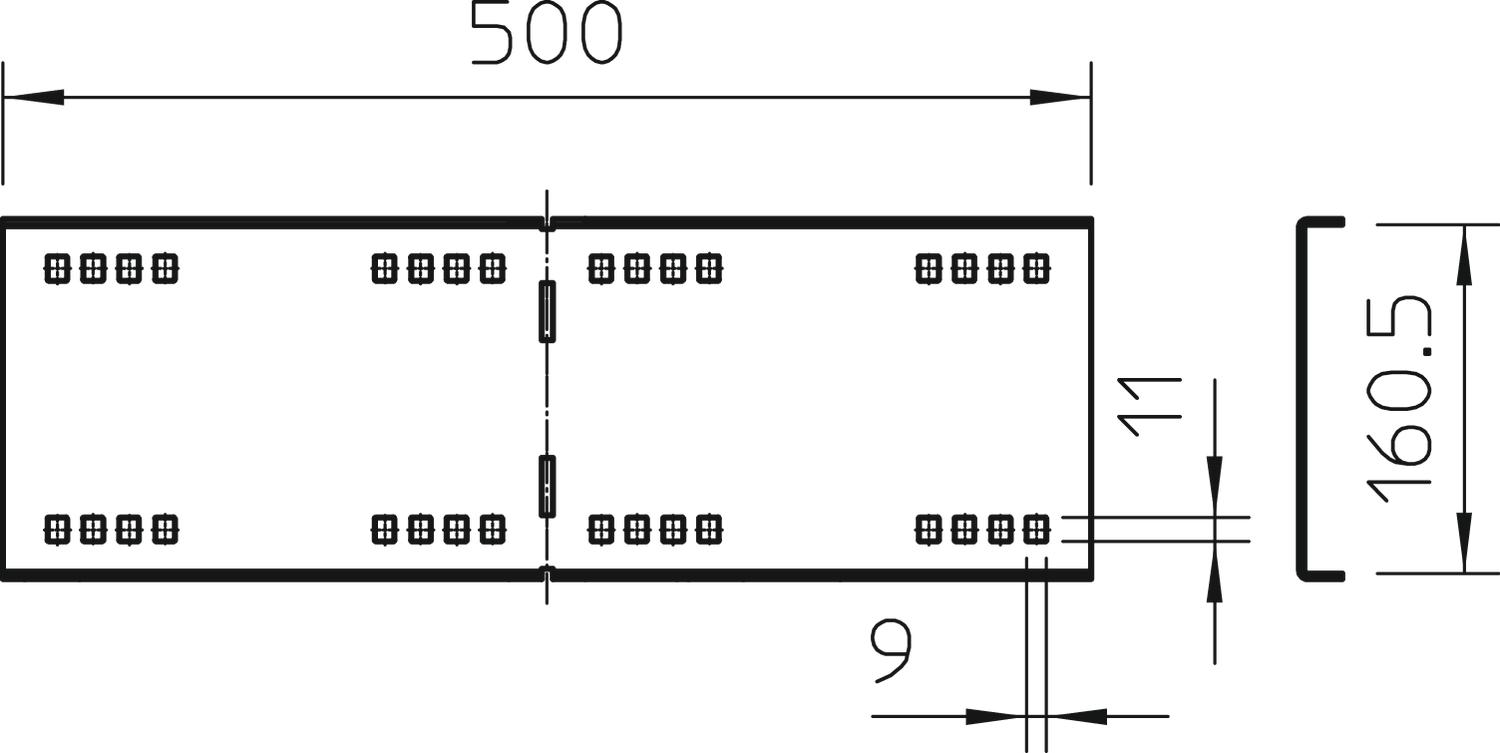 Adjustable connector, horizontal no Articulated connector, vertical no CO2 Footprint (GWP) Cradle-to-Gate 5,4958 kg CO2e / 1 Piece Colour zinc Connection type Screw connector Dimension 160x500 Height 160 mm Length 500 mm Maintain electrical functions no Material Steel Plate thickness 2,5 mm Rustproof steel, pickled no Suitable for cable ladder yes Suitable for cable tray yes Suitable for cable tray system height 160 mm Suitable for mesh cable tray no Surface Strip galvanized Version for Angle connector Width 20 mm - All types