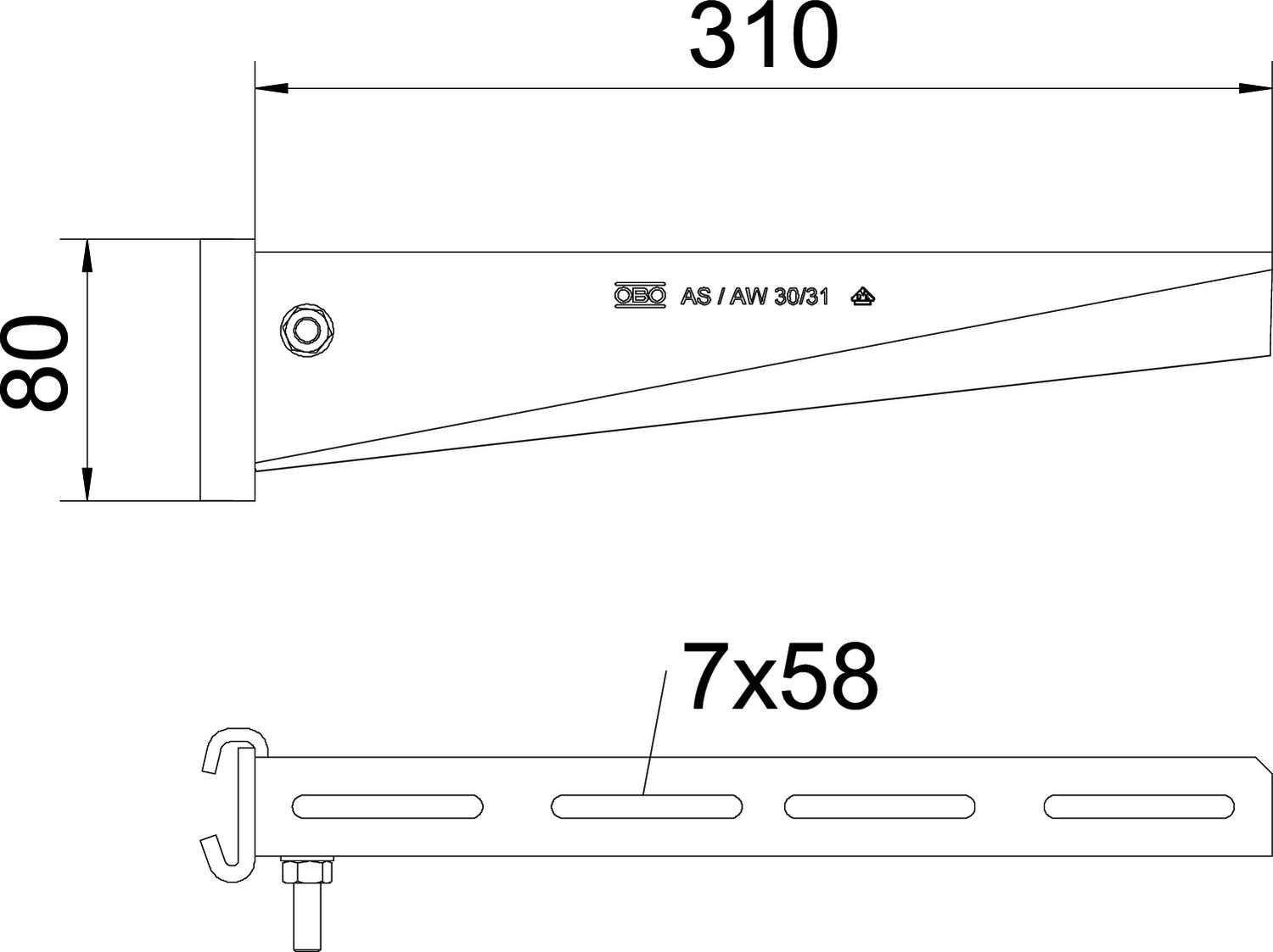 CO2 Footprint (GWP) Cradle-to-Gate 1,6988 kg CO2e / 1 Piece Colour zinc Dimension B310mm Dimension A 41 mm Dimension B 310 mm Dimension H 80 mm F in kN 3 kN Height 80 mm Length 41 mm Maintain electrical functions no Material Steel Rustproof steel, pickled no Surface Hot-dip galvanised Version for Support bracket Width 310 mm Technical data