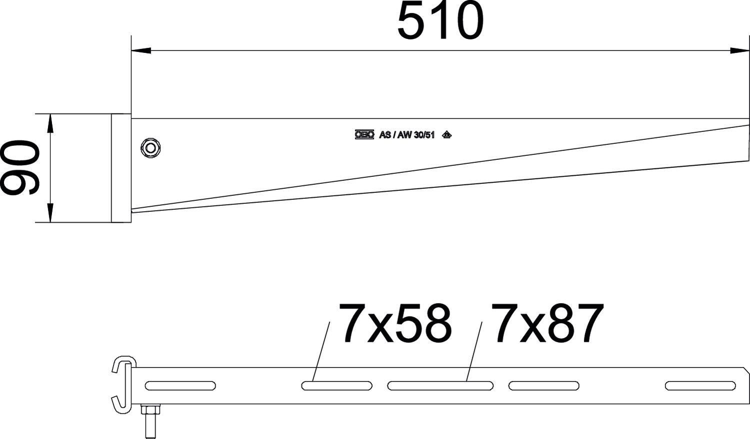 CO2 Footprint (GWP) Cradle-to-Gate 3,2854 kg CO2e / 1 Piece Colour zinc Dimension B510mm Dimension A 41 mm Dimension B 510 mm Dimension H 90 mm F in kN 3 kN Height 90 mm Length 41 mm Maintain electrical functions no Material Steel Rustproof steel, pickled no Surface Hot-dip galvanised Version for Support bracket Width 510 mm Technical data