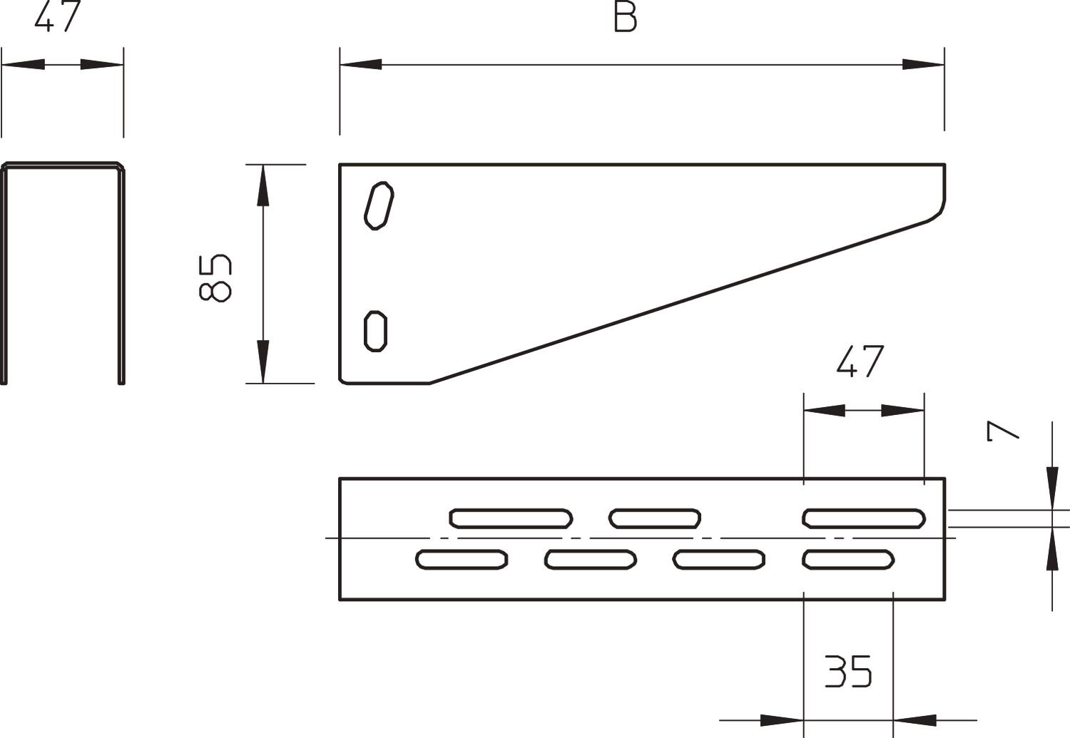 CO2 Footprint (GWP) Cradle-to-Gate 1,0085 kg CO2e / 1 Piece Colour zinc Dimension B185mm Dimension A 47 mm Dimension B 185 mm Dimension H 84,4 mm Height 84,4 mm Length 47 mm Maintain electrical functions no Material Steel Rustproof steel, pickled no Surface Strip galvanized Version for Support bracket Width 185 mm - All types