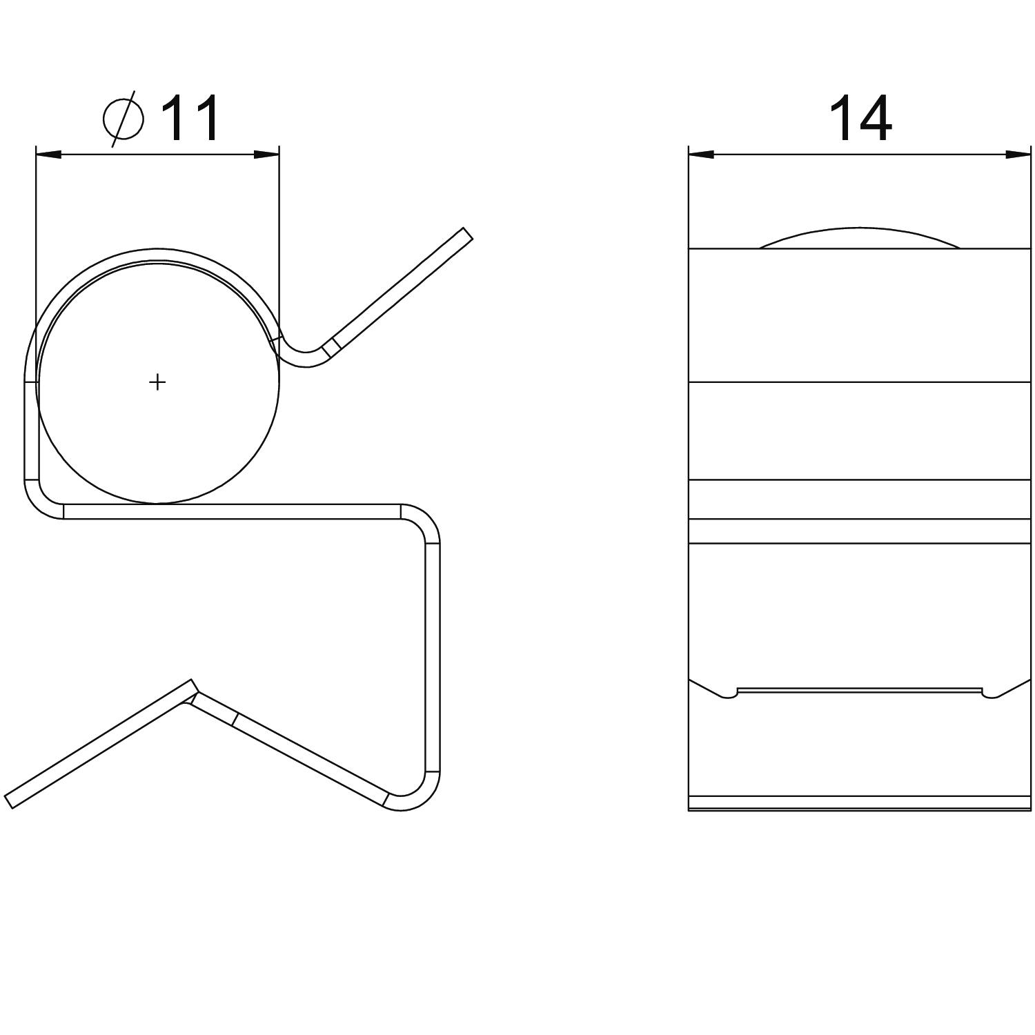 Colour zinc Connection type/component Pipe/cable Dimension 7,5-12mm Dimension W 14 mm Fastening type Clamp Flange thickness F max. 12 mm Flange thickness F min. 7,5 mm Height 24 mm Hinge, adjustable no Hinged no Length 19 mm Material Steel Pipe/cable diameter, max. 11 mm Pipe/cable diameter, min. 10 mm Surface Zinc slat Width 14 mm - All types