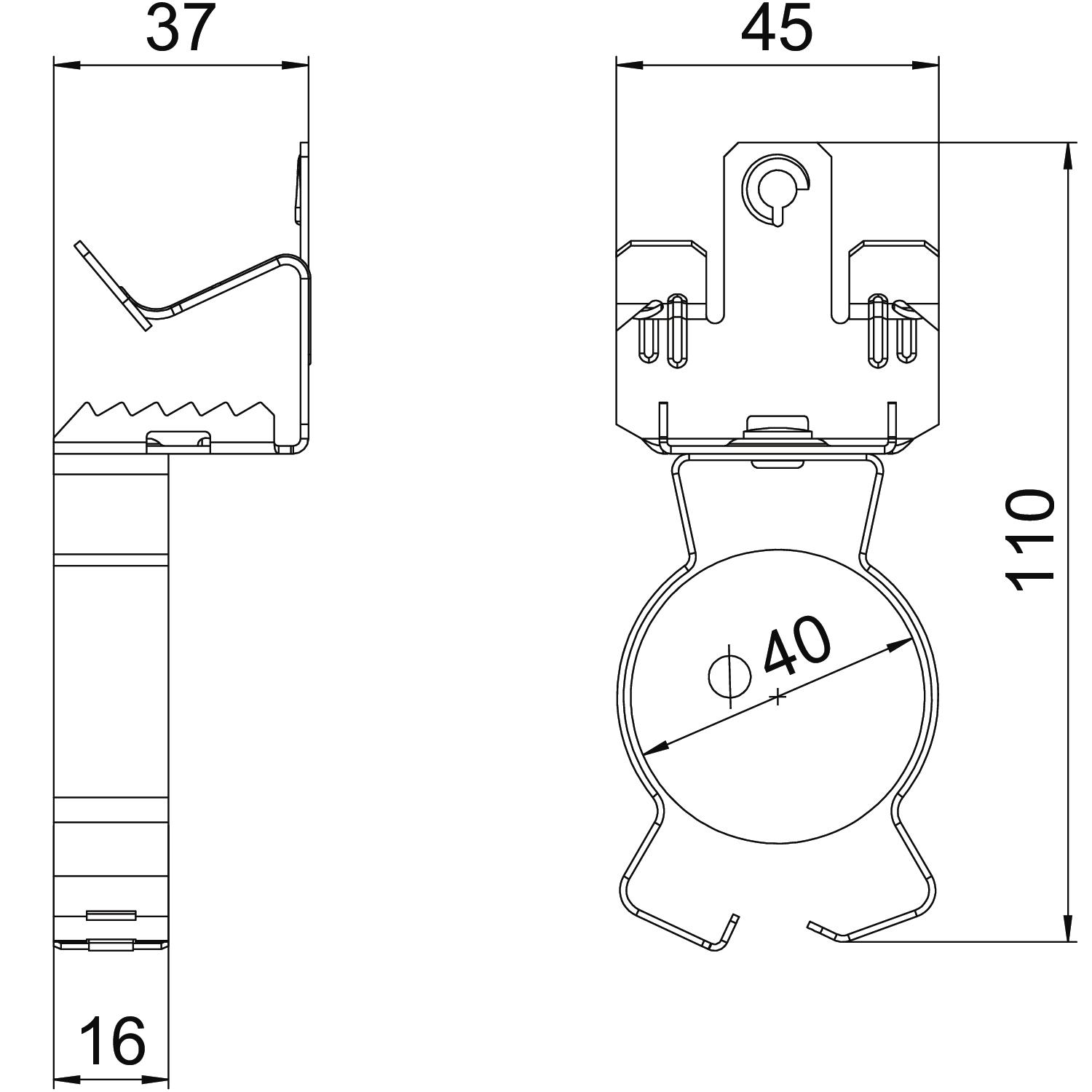 Breaking load 0,45 kN Colour zinc Connection type/component Pipe/cable Dimension 14-20mm Dimension L 110 mm Fastening type Clamp Flange thickness F max. 20 mm Flange thickness F min. 14 mm Height 36 mm Hinge, adjustable no Hinged no Length 113 mm Material Steel Pipe/cable diameter, max. 40 mm Pipe/cable diameter, min. 36 mm Surface Zinc slat Width 45 mm - All types