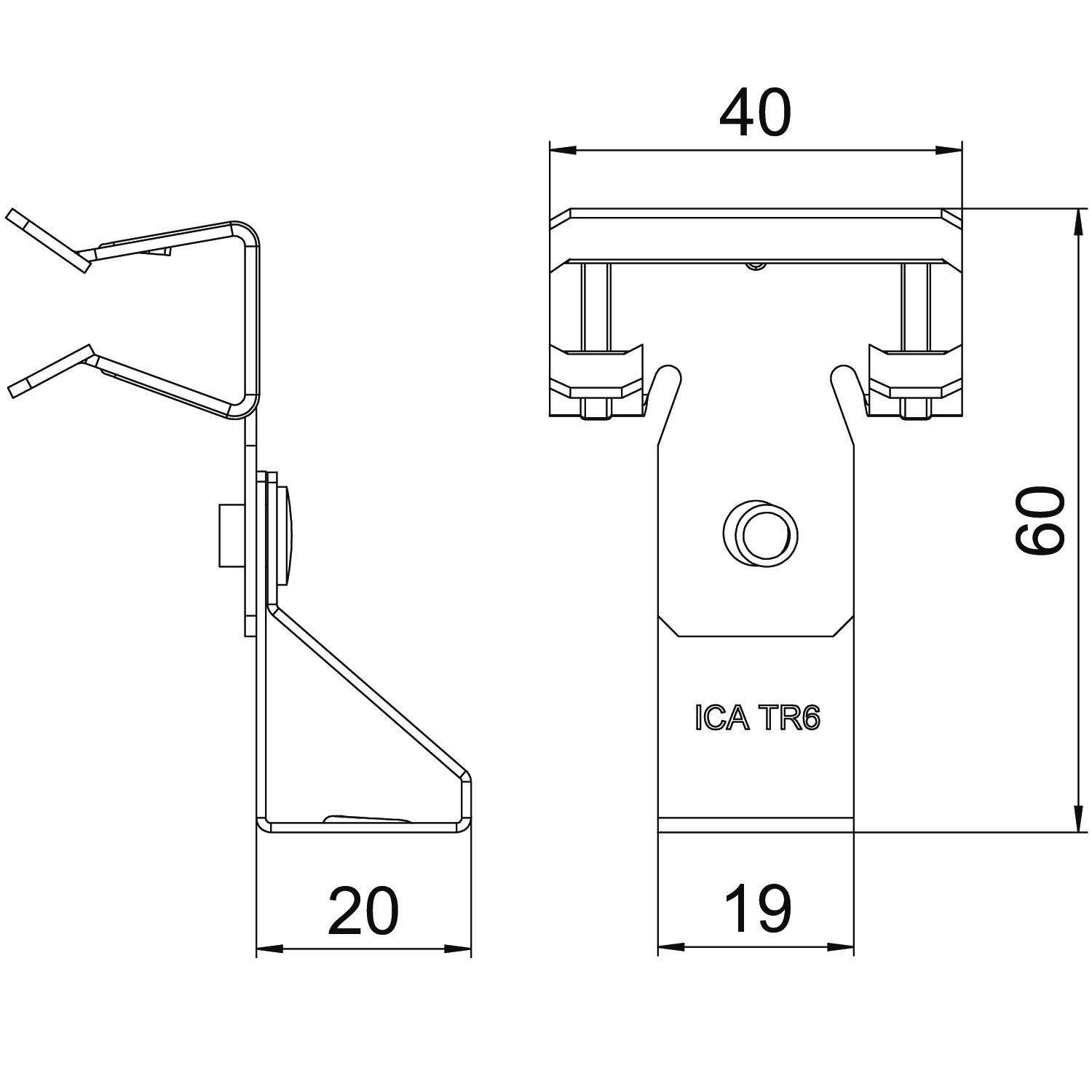 Breaking load 0,65 kN Colour zinc Connection type/component Thread Dimension 10-15mm Dimension L 60 mm Fastening type Clamp Flange thickness F max. 15 mm Flange thickness F min. 10 mm Height 44 mm Hinge, adjustable no Hinged no Length 60 mm Material Steel Surface Zinc slat Thread metric 6 Width 40 mm - All types