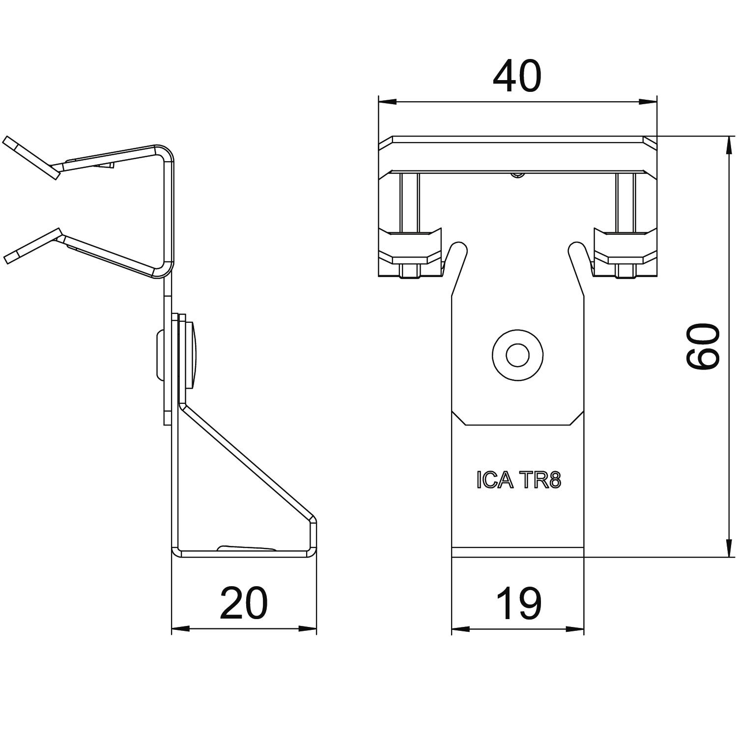 Breaking load 0,7 kN Colour zinc Connection type/component Thread Dimension 10-15mm Dimension L 60 mm Fastening type Clamp Flange thickness F max. 15 mm Flange thickness F min. 10 mm Height 45 mm Hinge, adjustable no Hinged no Length 60 mm Material Steel Surface Zinc slat Thread metric 8 Width 40 mm - All types