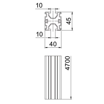 Cable duct optional no Cable duct, integrated no Colour Signal black; RAL 9004 Height 45 mm Length 4700 mm Material Aluminium Section modulus Sx 3680 mm³ Section modulus Sy 3760 mm³ Surface Anodised Width 40 mm - All types