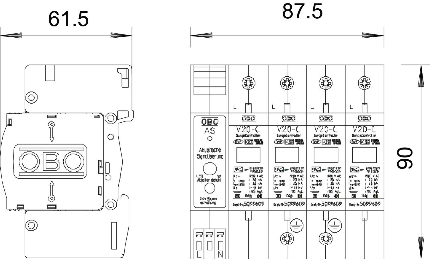 Arrester surge current (8/20 µs) [total] 80 kA Blow-out no CO2 Footprint (GWP) Cradle-to-Gate 2,0786 kg CO2e / 1 Piece Conductor cross-section, rigid (single-wire/multiwire), max. 35 mm² Conductor cross-section, rigid (single-wire/multiwire), min. 2,5 mm² Dimension 280V Installation type DIN rail 35 mm Integrated back-up fuse no Lightning protection zone LPZ 1→2 Max. mains-side overcurrent protection 125 Maximum back-up fuse 125 A Maximum continuous voltage AC 280 V Maximum discharge current (8/20 μs) 40 kA Network form TN Nominal discharge current (8/20 µs) 20 kA Nominal discharge current (8/20 µs) [L-N] 20 kA Nominal voltage AC (50/60 Hz) 230 V Operating temperature, max. 80 °C Operating temperature, min. -40 °C Permitted temperature range, max. 80 °C Permitted temperature range, min. -40 °C Pole version 4 Protection rating IP20 Remote signalling no Response time <25 ns Signalling on device Optical and acoustic SPD to EN 61643-11 Type 2 SPD to IEC 61643-1 Class II Test class, type 2 yes TN network form yes TN-C-S network form yes TN-S network form yes Version for 4-pole with AS; 280 V - All types