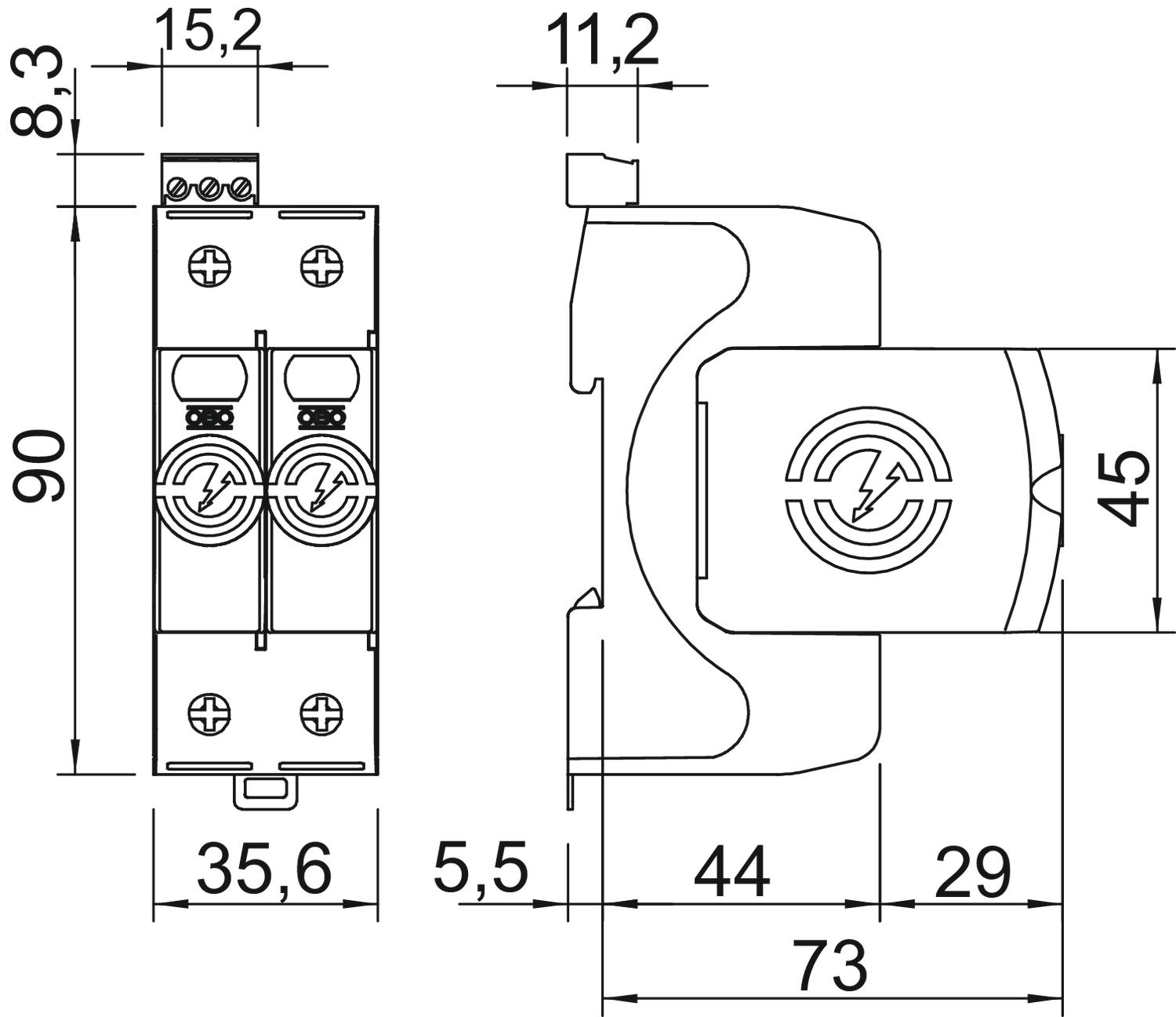 • Discharge capacity to 40 kA (8/20) per pole through high-performance varistors