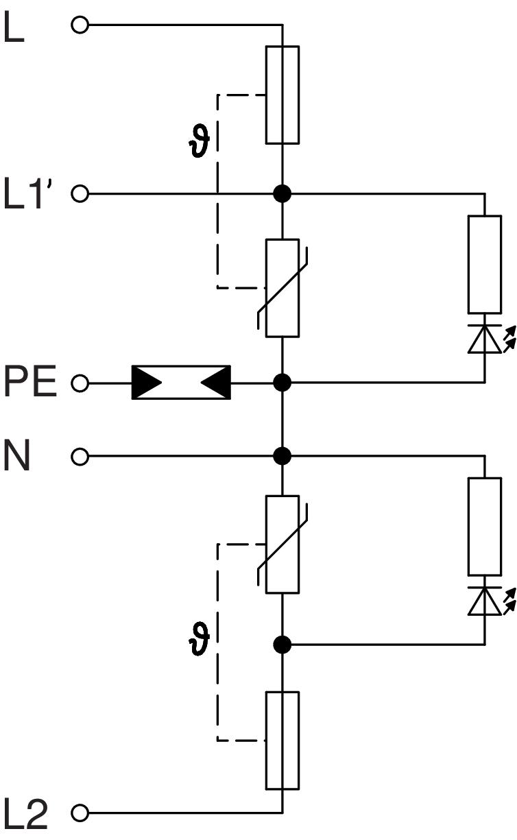 • Protective circuit with a maximum arresting capacity of 10 kA