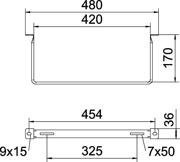 Adjustable no CO2 Footprint (GWP) Cradle-to-Gate 2,722 kg CO2e / 1 Piece Colour stainless steel Dimension 170x420 Dimension b 325 mm Dimension B 420 mm Dimension D 50 mm Dimension H 170 mm Dimension l 454 mm Dimension L 480 mm F in kN 3,5 kN Maintain electrical functions no Material Stainless steel 1.4529 Material thickness 2 mm Suitable for cable ladder yes Suitable for cable tray yes Suitable for mesh cable tray yes Tray fastening Screw-on Version for Miscellaneous - All types
