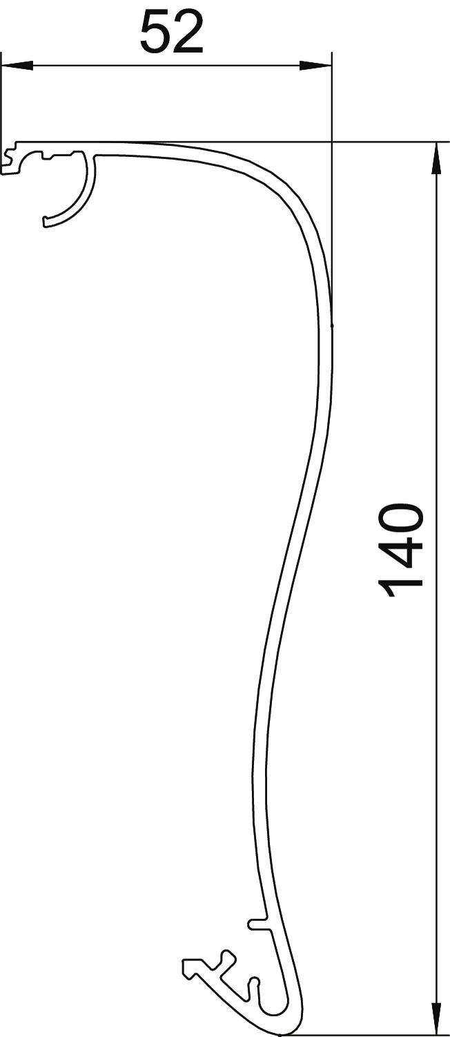Antibacterial treatment no CO2 Footprint (GWP) Cradle-to-Gate 16,2309 kg CO2e / 1 Piece Colour aluminium Cover mounting type Cross-over Dimension 52x140x999 Halogen-free yes Height 52 mm Length 999 mm Material Aluminium Protective film yes Surface Anodised Version for Smooth Width 140 mm - All types