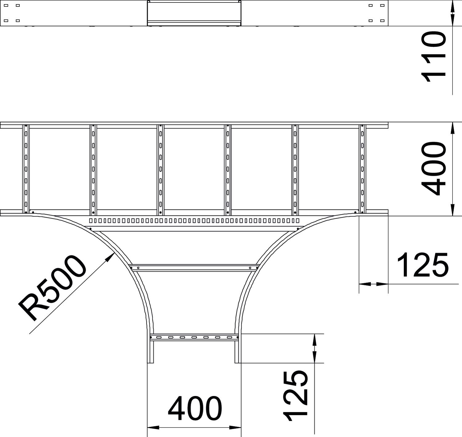 Product descriptionT piece to create a horizontal branch, fittings for cable ladders of side height110 mm. With connector perforation. Can be used in indoor areas. Connector and fastening material must be ordered separately. Fittings must be supported by the support structure.