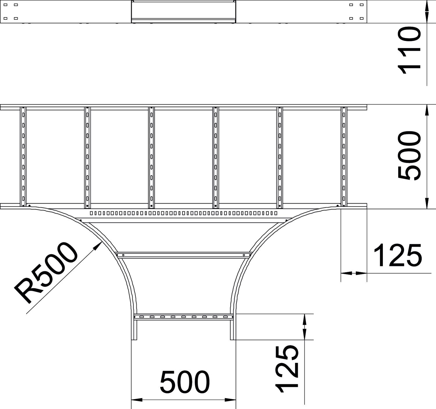 Product descriptionT piece to create a horizontal branch, fittings for cable ladders of side height110 mm. With connector perforation. Can be used in indoor areas. Connector and fastening material must be ordered separately. Fittings must be supported by the support structure.