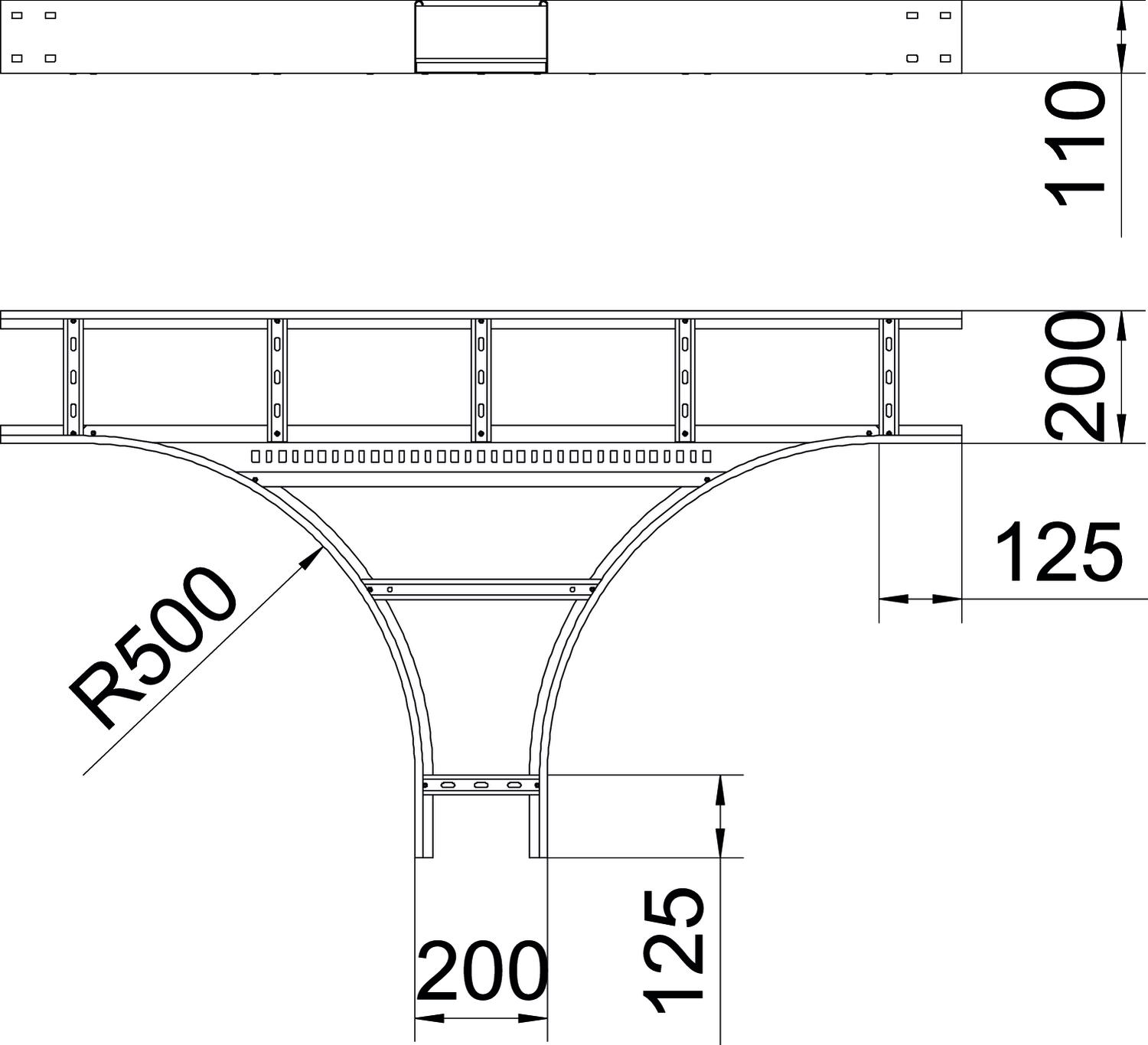Product descriptionT piece to create a horizontal branch, fittings for cable ladders of side height110 mm. With connector perforation. Can be used indoors and outdoors. Connector and fastening material must be ordered separately. Fittings must be supported by the support structure.