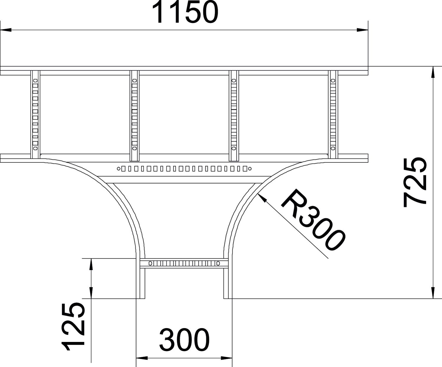 Product descriptionT piece, horizontal, with welded rung for all cable ladder types of 110 mm side height.