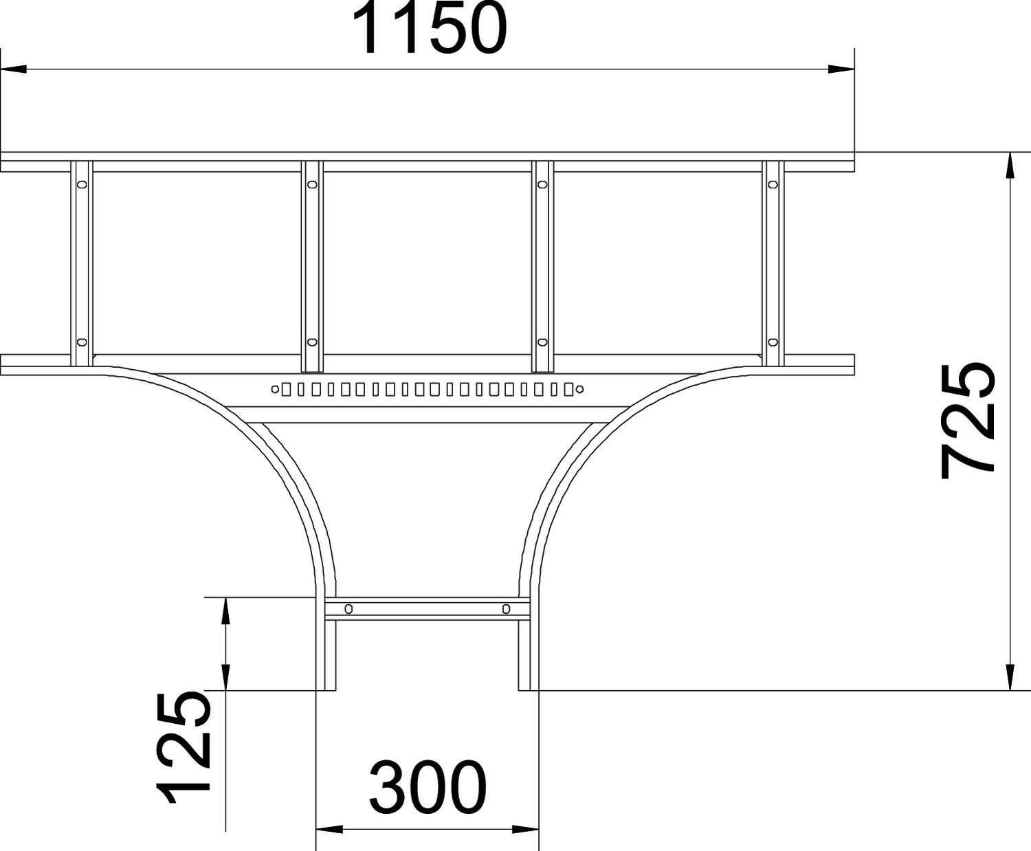 Product descriptionT piece, horizontal, with welded rung for all cable ladder types of 110 mm side height.