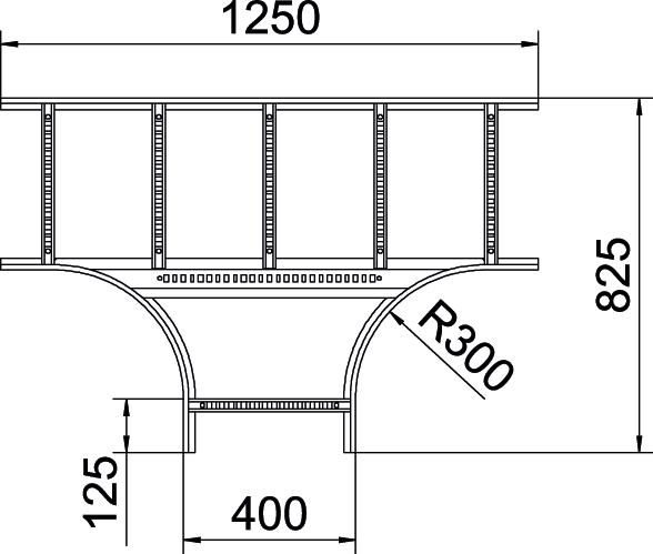 Product descriptionT piece, horizontal, with welded rung for all cable ladder types of 110 mm side height.