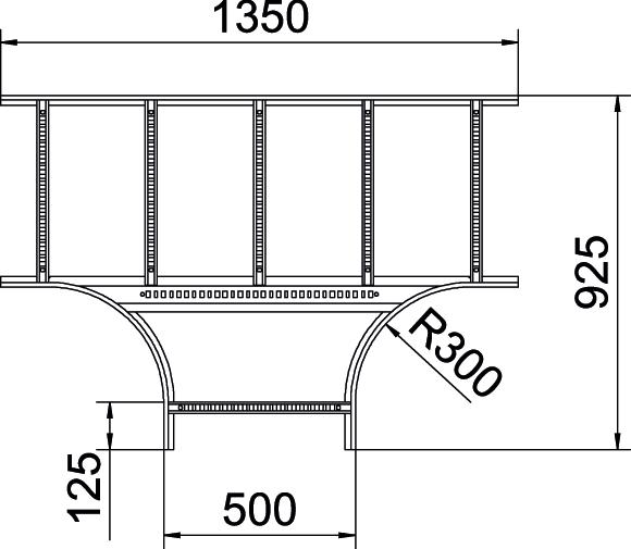 Product descriptionT piece, horizontal, with welded rung for all cable ladder types of 110 mm side height.